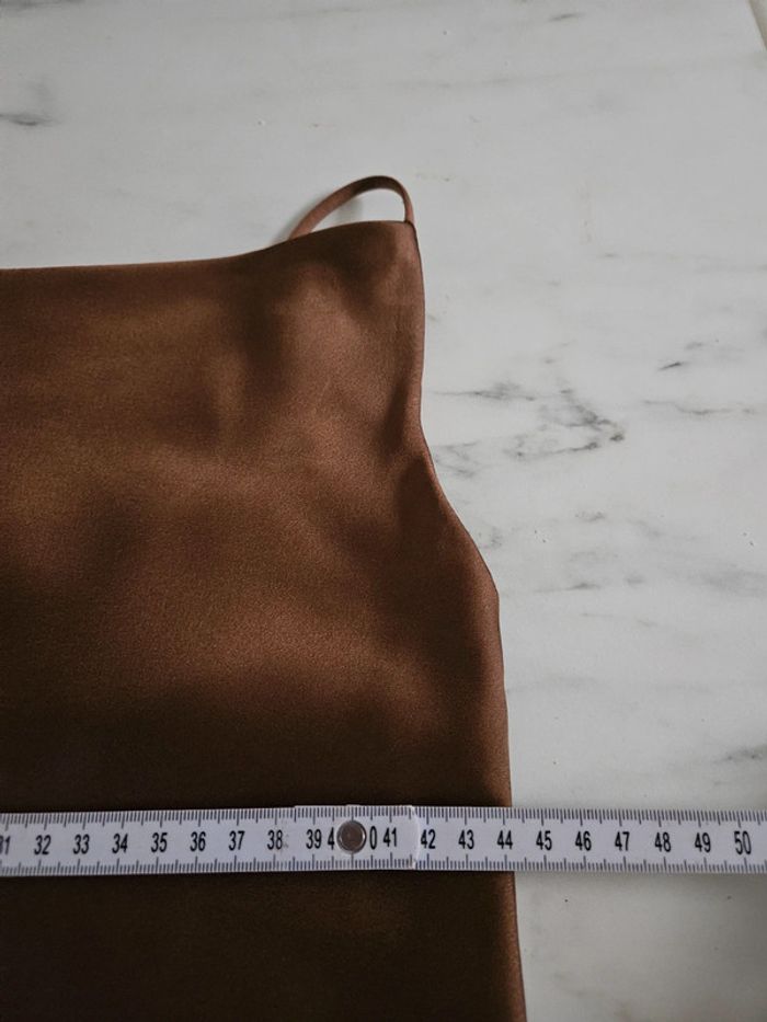 Pas d'étiquette de taille mais correspond à une taille S Matière satinée. Portée mais reste ne très bon etat