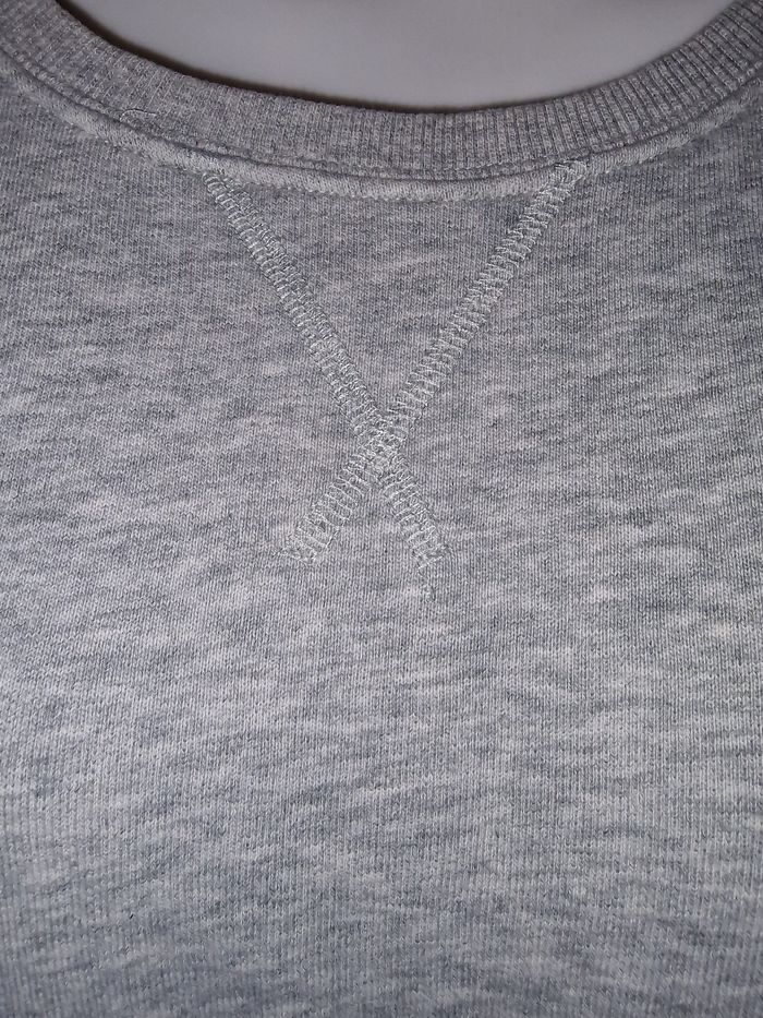 Besoin d'un passe partout stylé de marque ?? Il est là, le pull qu'il vous faut, qui suivra avec toutes vos tenues par son côté classique col rond, coupe droite et gris chiné clair. Le petit plus ? Un brin d'originalité par son biais de marque sur le col interieur et sur le bas du pull. Mesure poitrine de 54cms à plat à 60cms en tirant (tissu extensible) Hauteur 68cms Je n'ai pas remarqué d'anomalie