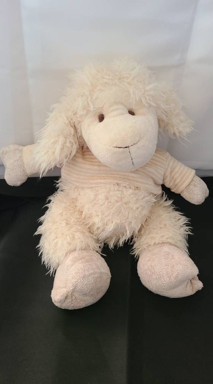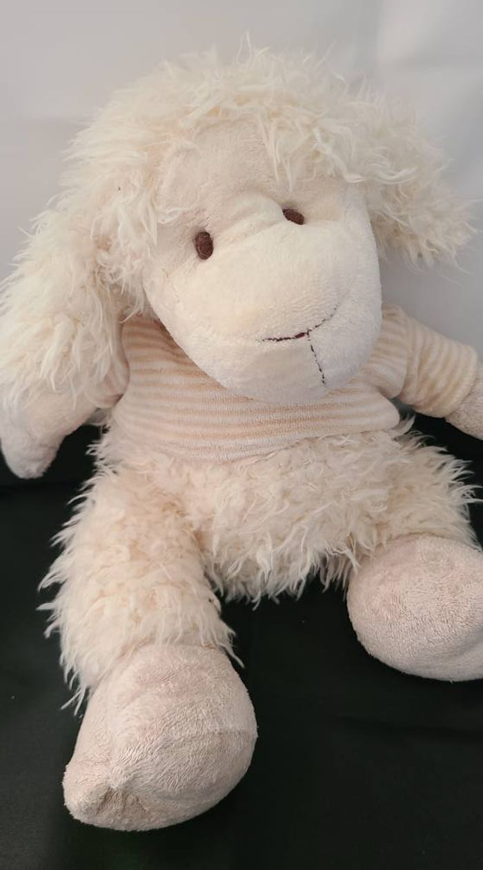 Doudou mouton blanc pull rayé beige PLAYKIDS - photo numéro 1