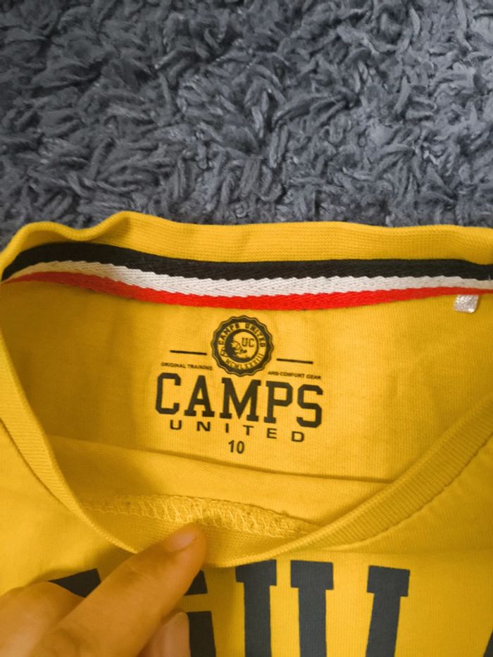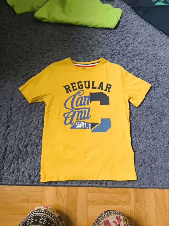 Lot de 4 t-shirts multimarque 10 ans Un noir H&M (8-10 ans) Un vert clair et un bleu foncé Okaïdi Un jaune Camps United
