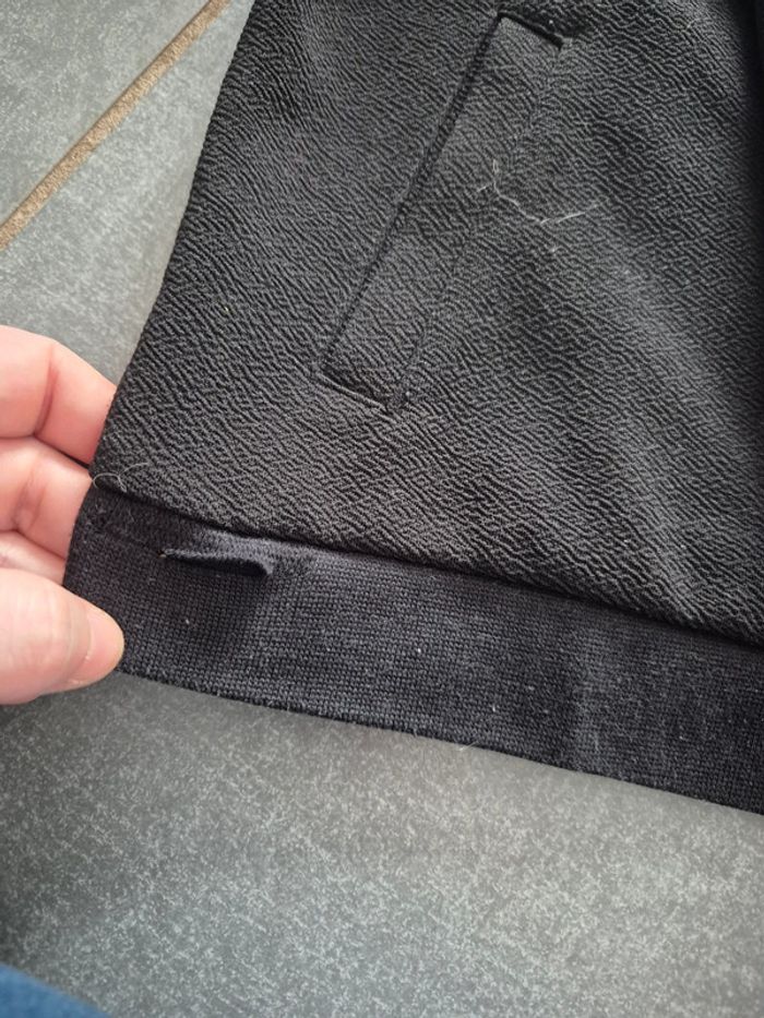 Petit accro sur le bas du gilet, petit fil de tiré sur les bandes latérales Dessin effacé sur le pull, voile dans le dos