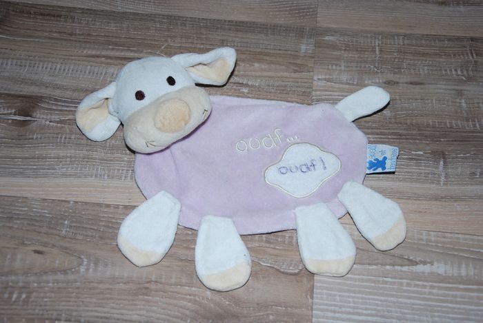 Doudou chien rose mauve Ouaf cmp plat éveil et tendresse