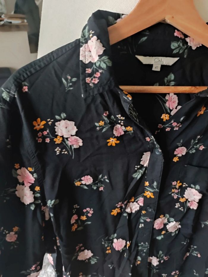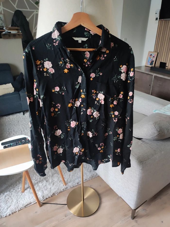 Chemise noire fleuries T.42 Clockhouse #elomatfemme42