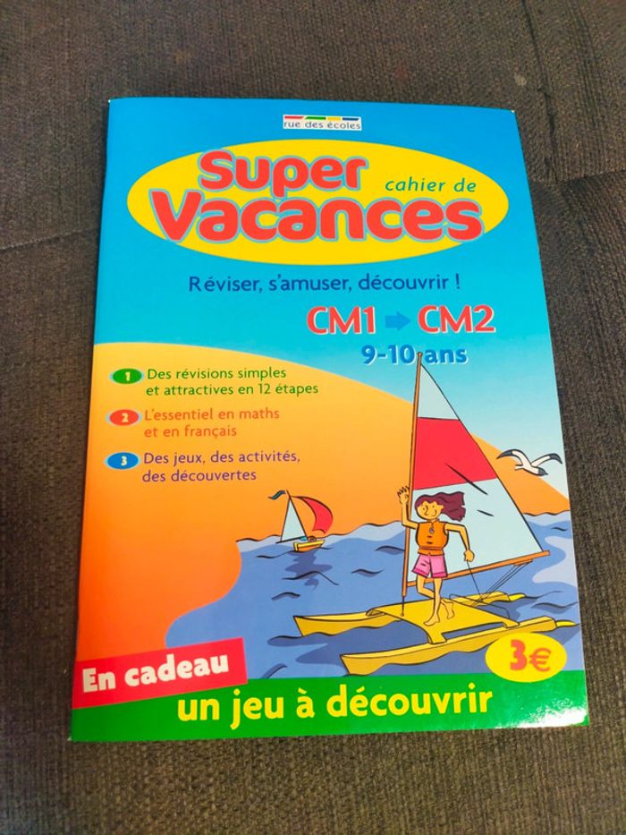 Super cahier de vacances CM1 / CM2 neuf marque original rue dès écoles . En cadeau au centre du cahier jeu de l oie . Excellente état libre de suite. Envoi possible à vos frais.