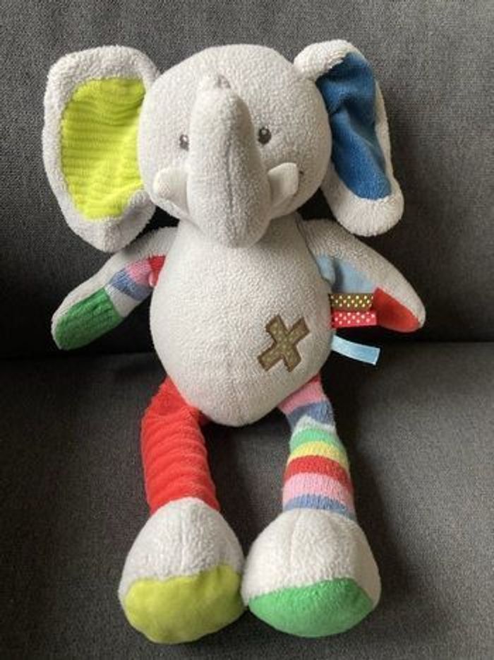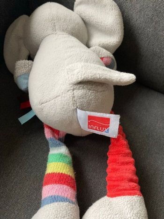 Marque influx Doudou éléphant présentant différentes textures a toucher (polaire, laine, velours, rubans) et de nombreuses formes à attraper (oreilles, trompe, défenses, queue, « bras », « jambes » et rubans) Occasion Pas de défaut (FlopacaGrandeboite) Envoi via mondial Relay, relais colis ou chronopost : les 3 types de transports sont disponibles près de chez moi.