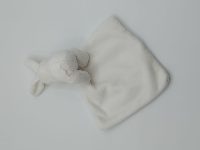 DOUDOU ET COMPAGNIE peluche lapin blanc et son mouchoir TTBE - Étiquette coupée - photo numéro 2