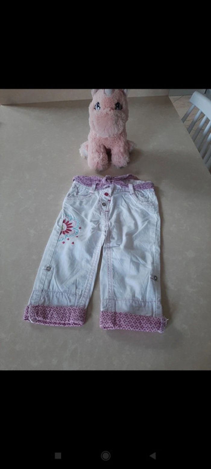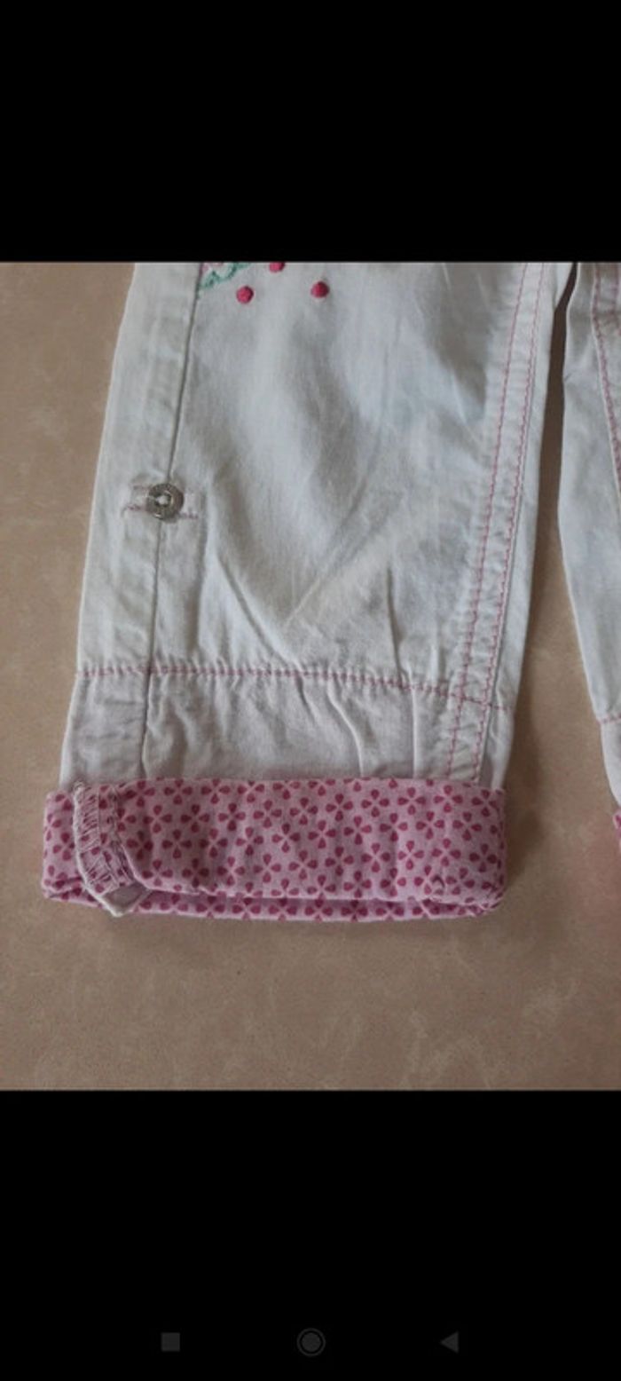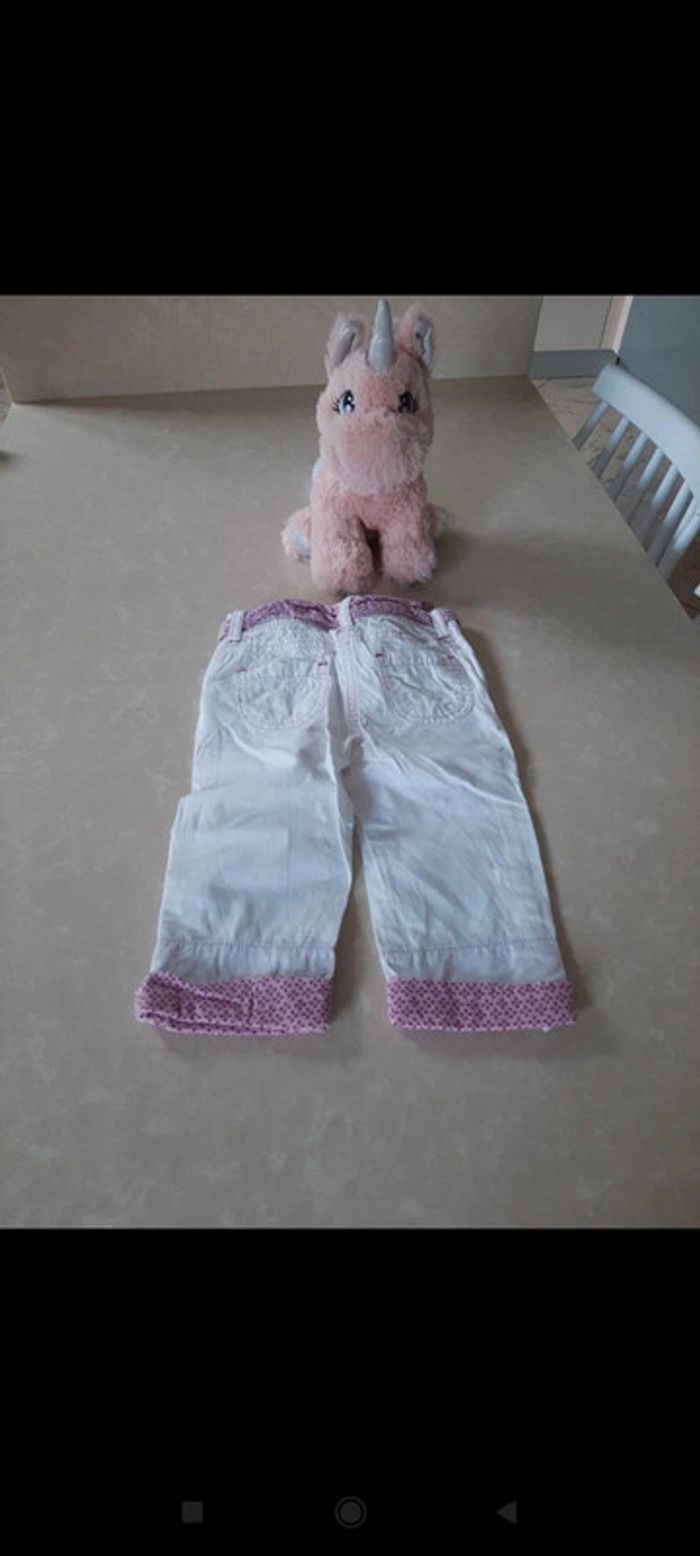 Superbe pantalon blanc et rose mauve avec revers avec dessin sur jambe droite. Possibilité de le raccourcir en pantacourt voit photo. Marque: gemo Taille : 18 mois État impeccable comme sur photo. Bon shopping 🌸❄ #pepettechoupettefille18mois #pantalonfille18mois #pantalongemo18moisfille