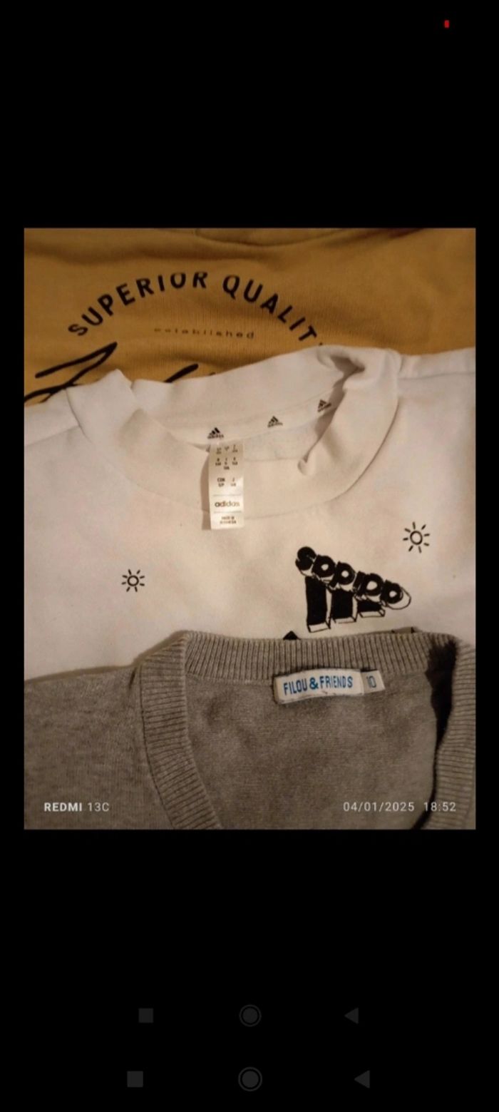 lots garçon taille 140 1 pantalon 1 sweat adidas 1 sweat capuche 1 gilet 1 manteau chaude le tout en très bon état , certains impeccable