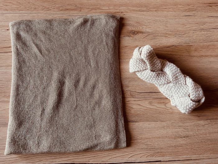 Vends une écharpe infini beige toute irisée + un beau bandeau cache oreilles tressé, tout chaud, tout doux, couleur crème irisé. Tout est neuf. Je cède le tout à 5 euros seulement! Lot indissociable!