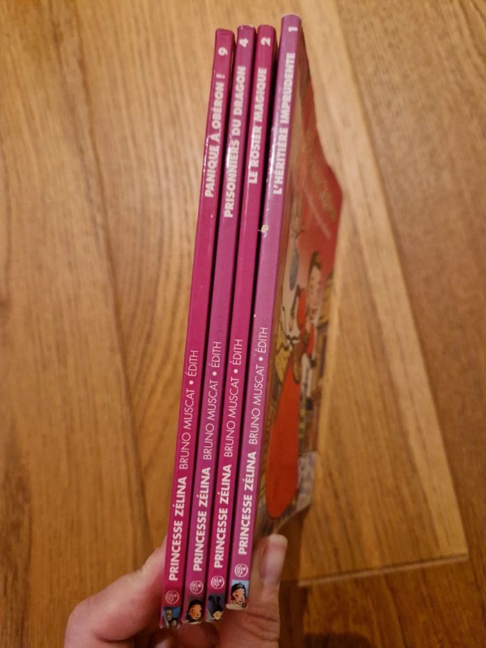 4 princesse Zélina. Tomes 1, 2, 4 et 9 L'héritière imprudente, le rosier magique, prisonnier du dragon, panique à Obéron. Bon etat