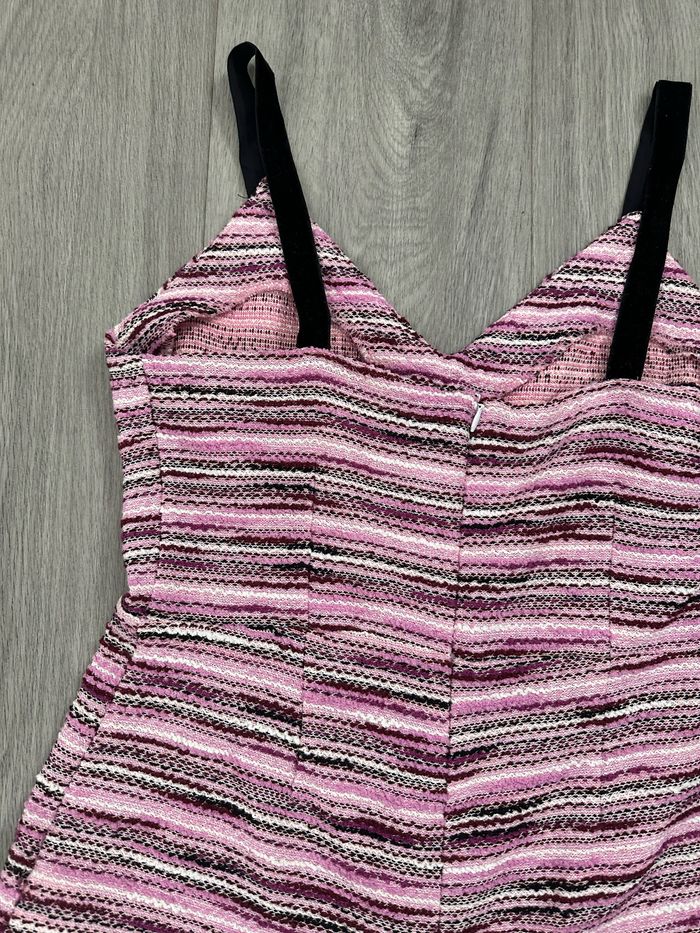 Combishort - Excellent état - Taille 38 équivalent M - Marque Zara - Rose et Violet - Zip dans le dos - Tissus en tweed - Bretelles en velours - Polyester, coton et acrylique Dimensions: - 50cm niveau aisselles - 55cm de long à partir de l’aisselle