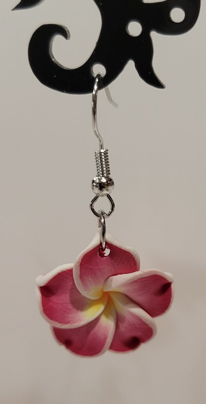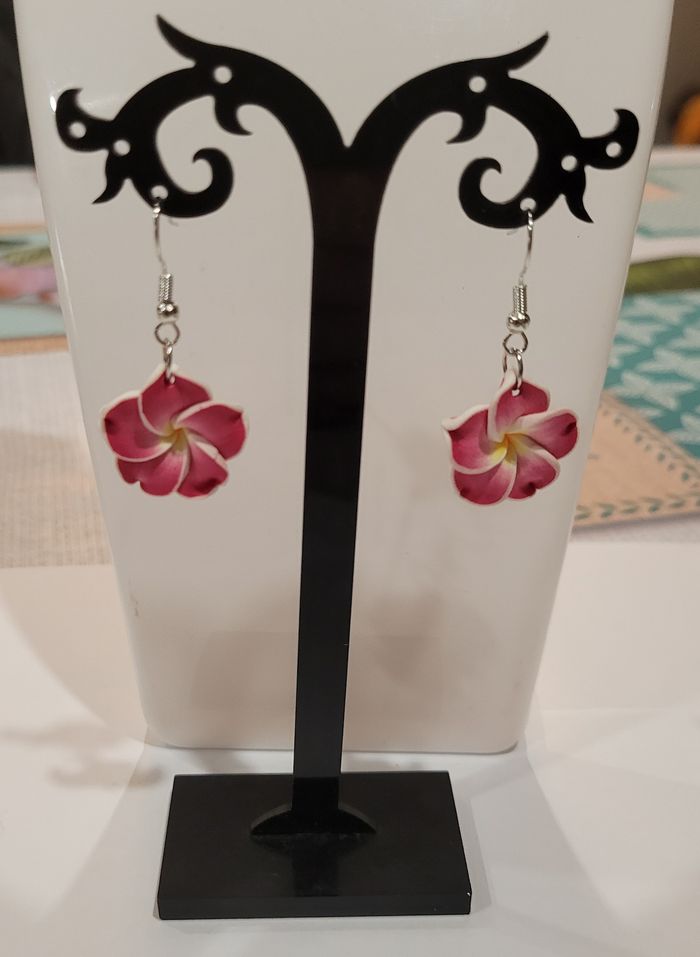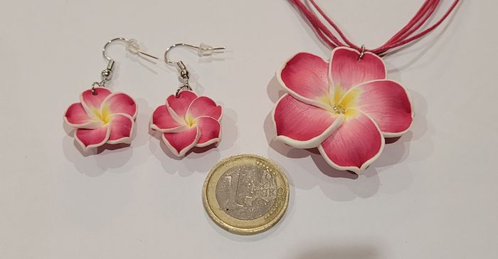 PARURE COLLIER + BOUCLES D'OREILLES FLEUR DE TAHITI ROSE FONCE ! NEUF ! - photo numéro 7