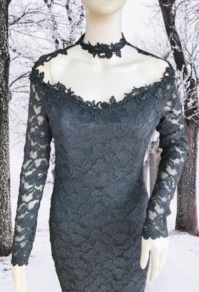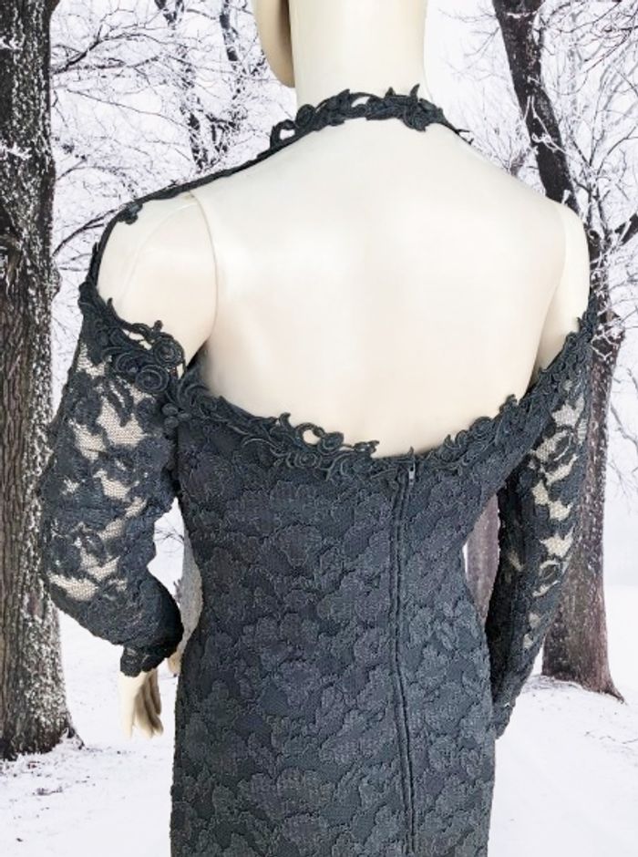 MOLLY MALLOY - ROBE FOURREAU NOIRE DÉCOUPE ORIGINALE & DENTELLE FLEURS 38/40 - M - photo numéro 8