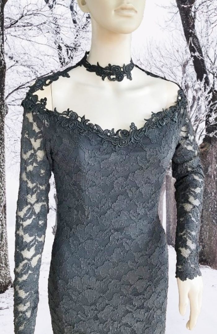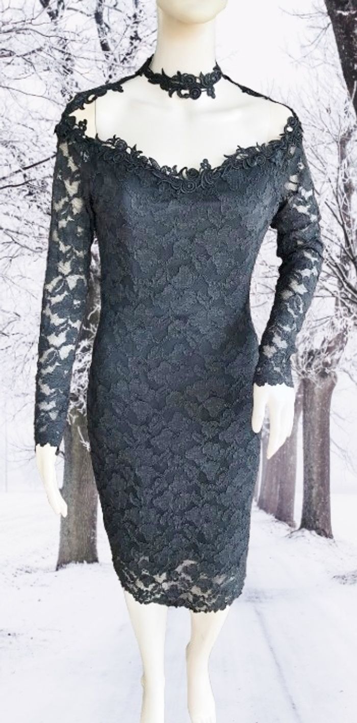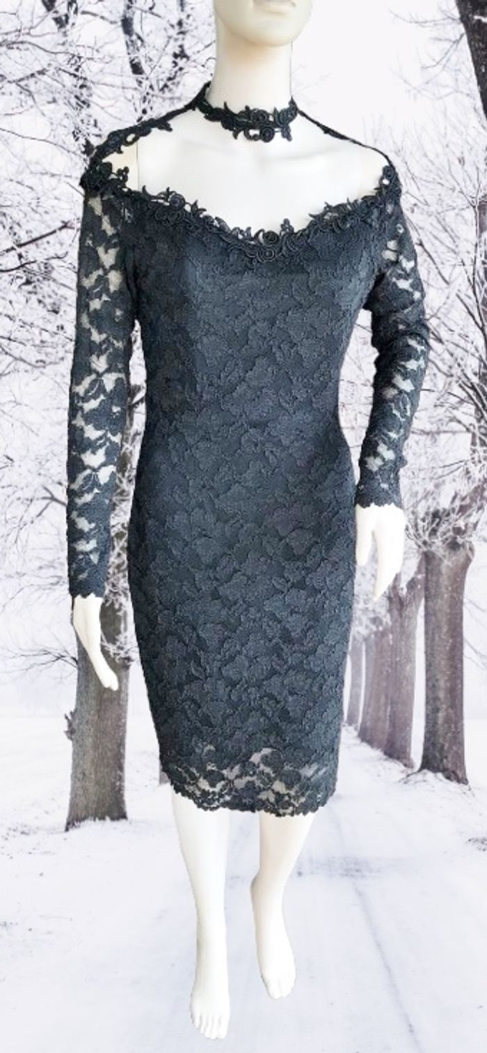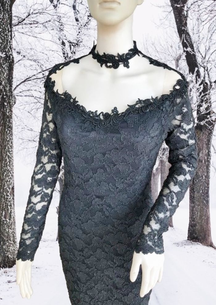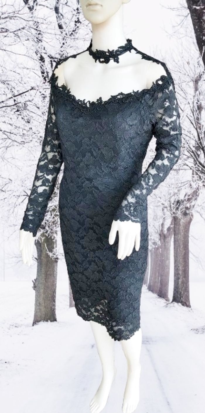 MOLLY MALLOY - ROBE FOURREAU NOIRE DÉCOUPE ORIGINALE & DENTELLE FLEURS 38/40 - M - photo numéro 2