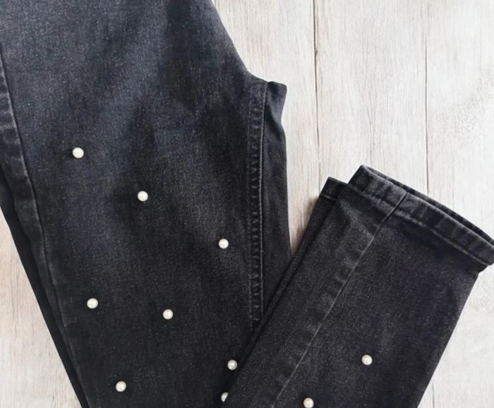 🌸 Jeans / Pantalon noir avec jolie perle blanche - Taille 38 🌸 - photo numéro 3