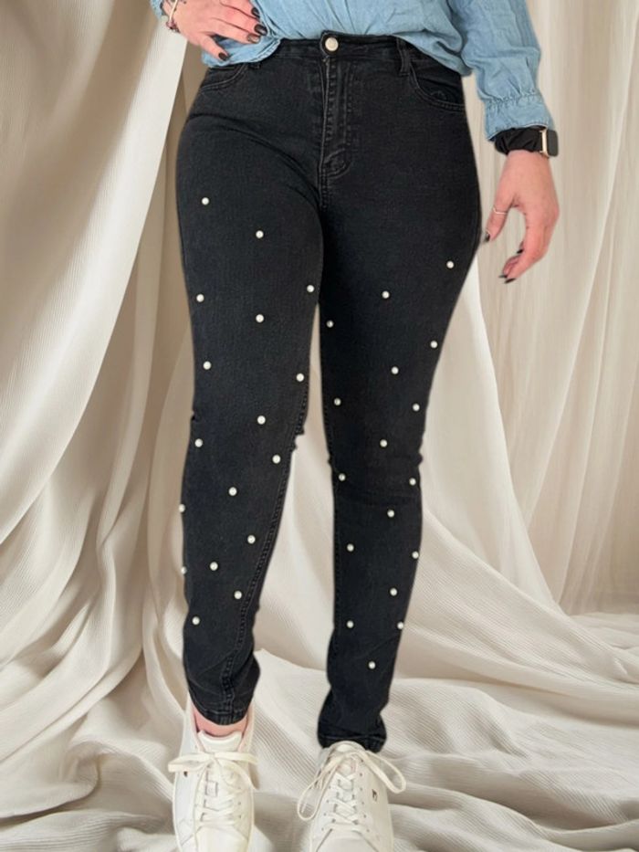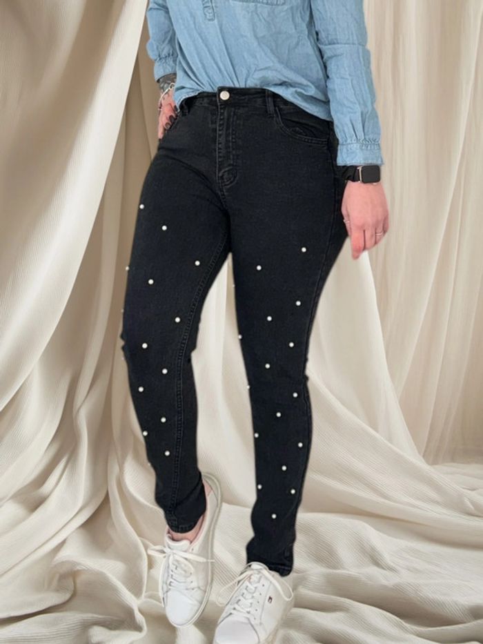 🌸 Jeans / Pantalon noir avec jolie perle blanche - Taille 38 🌸 - photo numéro 1