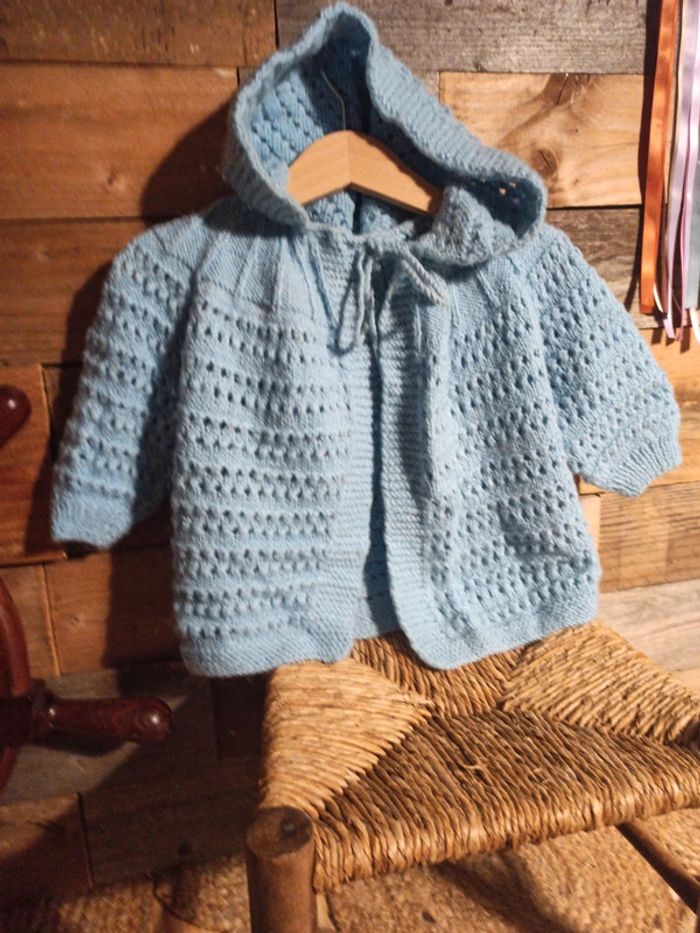 Gilet tricoté bleu vintage fait main tbe 12 mois - photo numéro 1