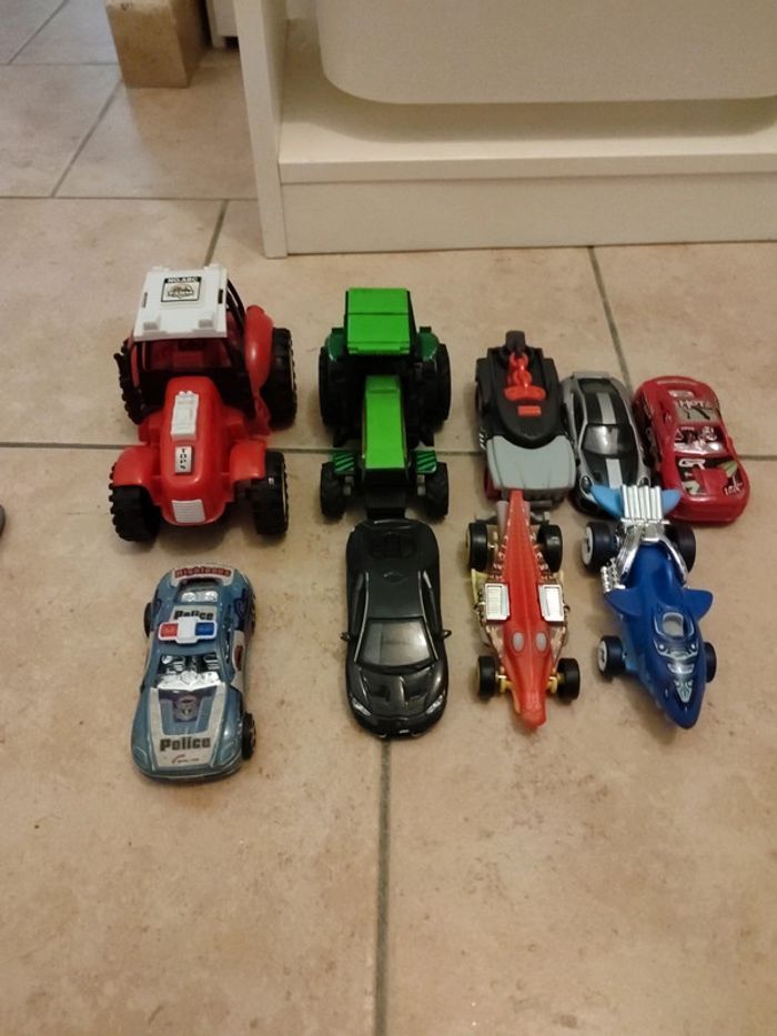 7 voitures 2 tracteurs Donne avec une voiture télécommandée qui ne fonctionne pas mais je pense qu'elle peut être réparée par une personne bricoleuse Bon état général