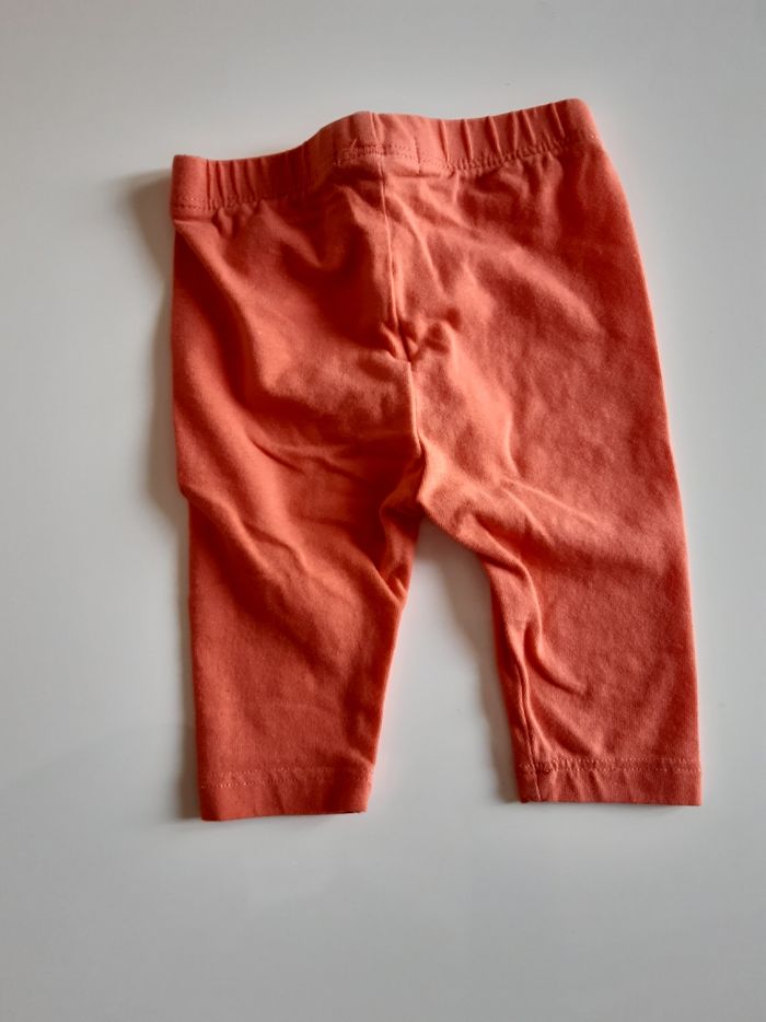 Ensemble 3 mois composé de: - un pantalon, couleur corail, ceinture élastique, marque gemo - un tee shirt manches longues, couleur blanc avec des dessins de nœuds, fermeture par des boutons pression dans le dos, marque kiabi