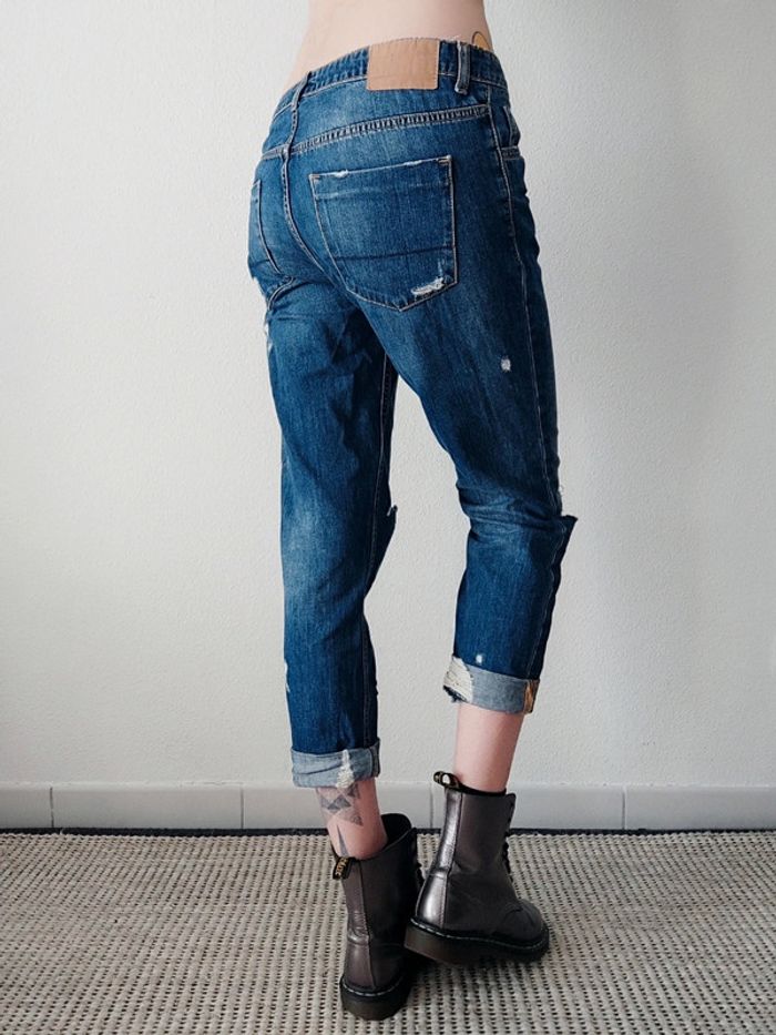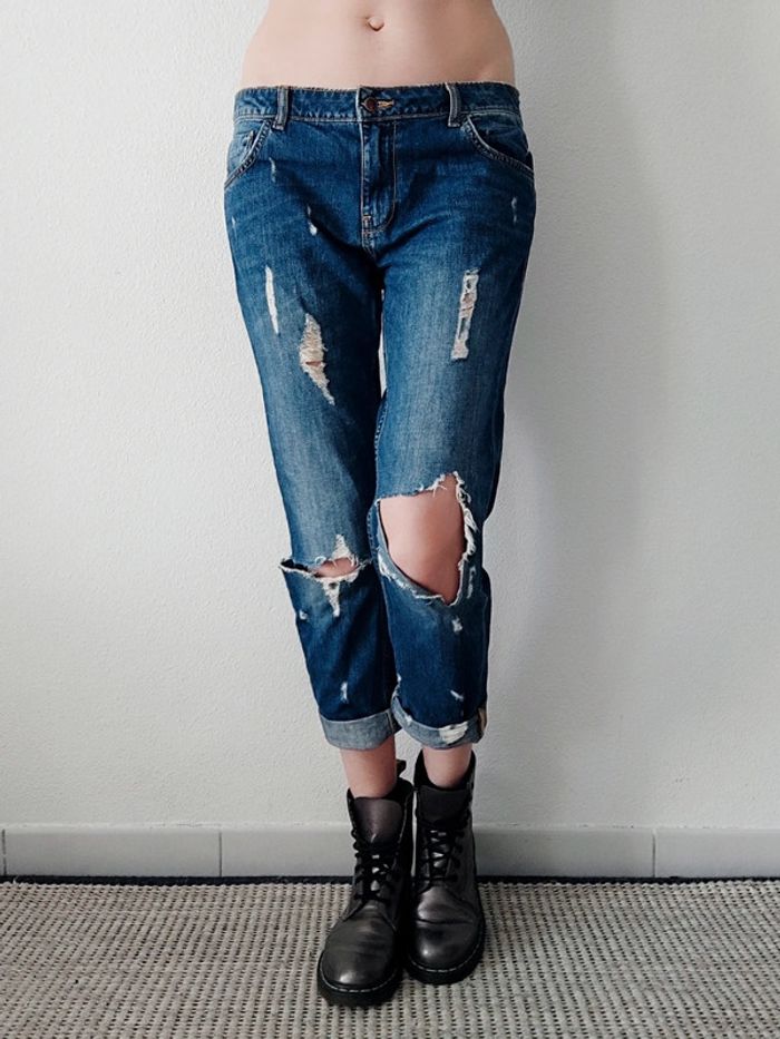 Pantalon en jean troué boyfriend bleu marine / Kiabi - 38/M à 40/L