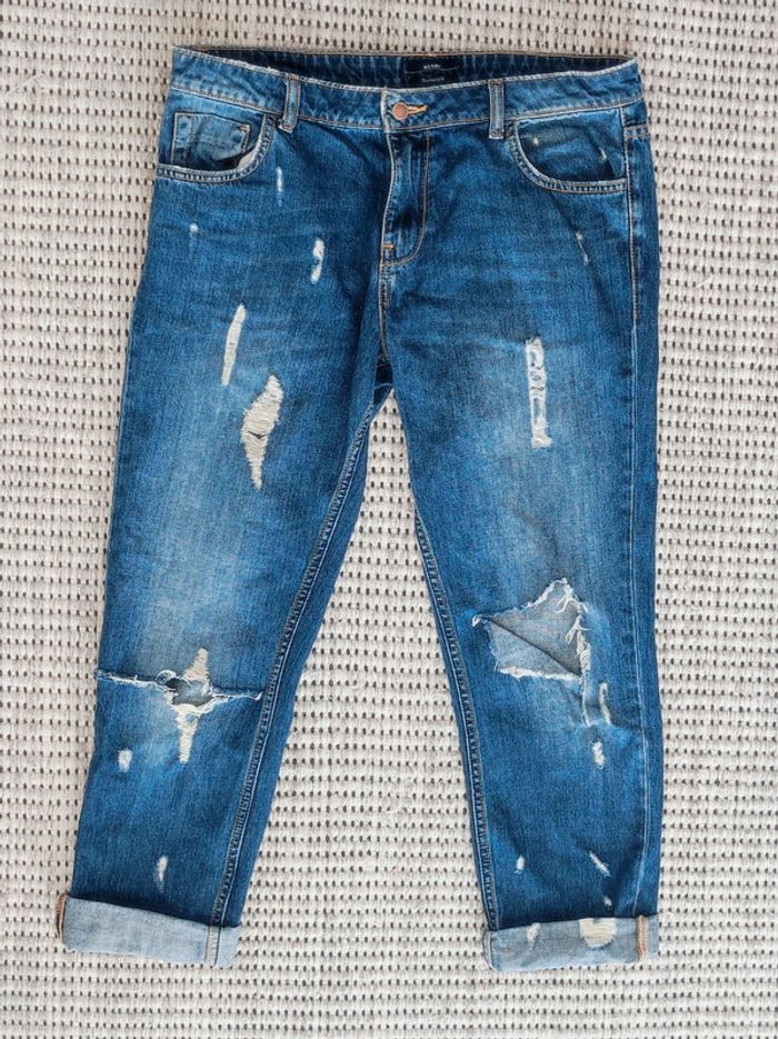 Pantalon en jean troué boyfriend bleu marine / Kiabi - 38/M à 40/L - photo numéro 1