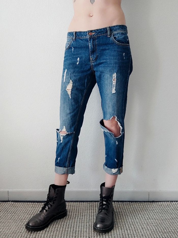 Pantalon en jean troué boyfriend bleu marine / Kiabi - 38/M à 40/L - photo numéro 8