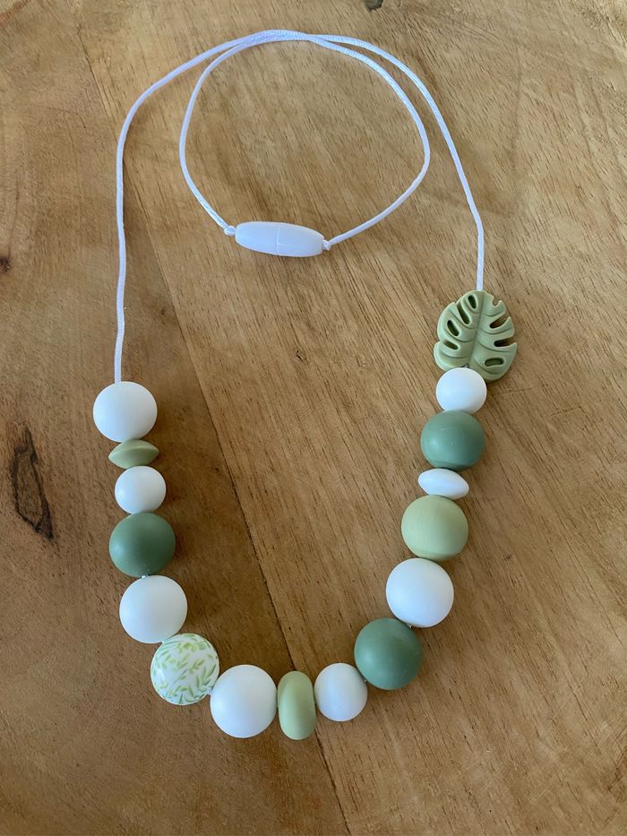 Bonjour, Je réalise des colliers d’allaitement avec des perles en silicone. Plusieurs couleurs de perles sont disponibles ainsi que des perles fantaisies (Fleurs 🌸, feuilles 🍁 , tipi, ballons de sports ⚽️ 🏈🎾🏀, arc en ciel 🌈 , montgolfières, oreilles de Mickey, cerfs, panda 🐼 , ours 🐻 , renard 🦊, papillons 🦋 , dinosaures 🦕, Koala 🐨 …) N’hésitez pas à me contacter si vous souhaitez des renseignements ☺️