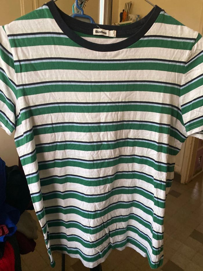 T-shirt vert, rayé blanc - photo numéro 1