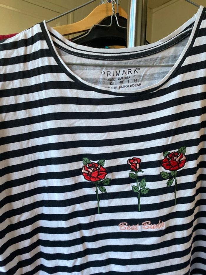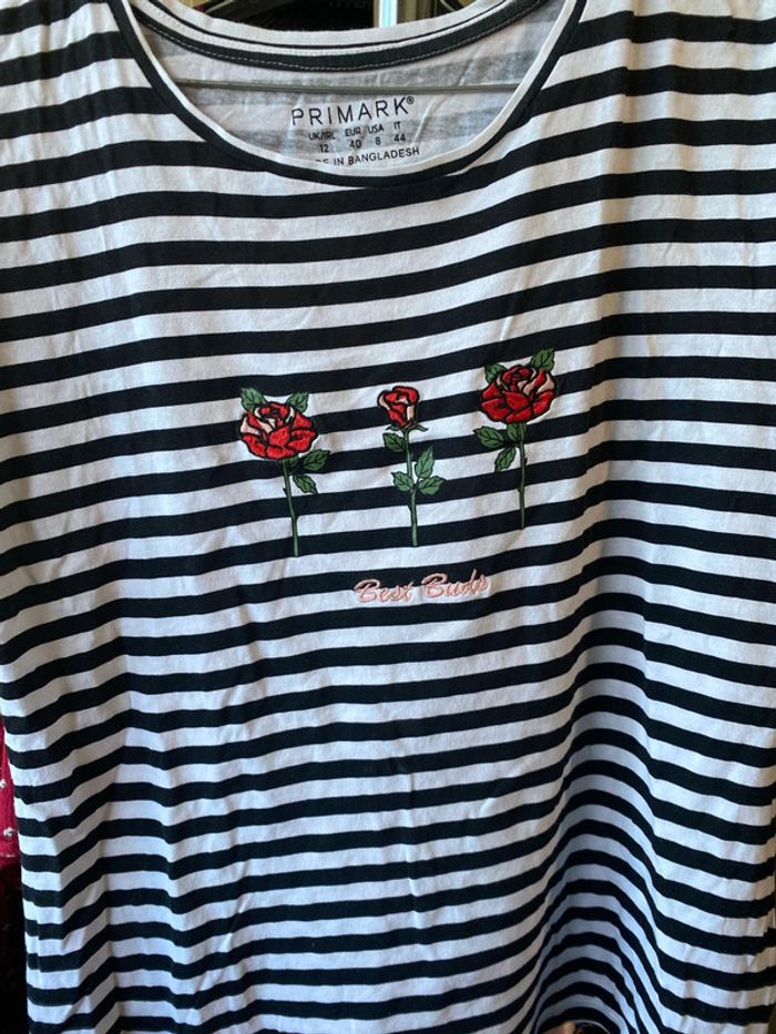 T-shirt blanc et bleu marine taille 40 - photo numéro 4