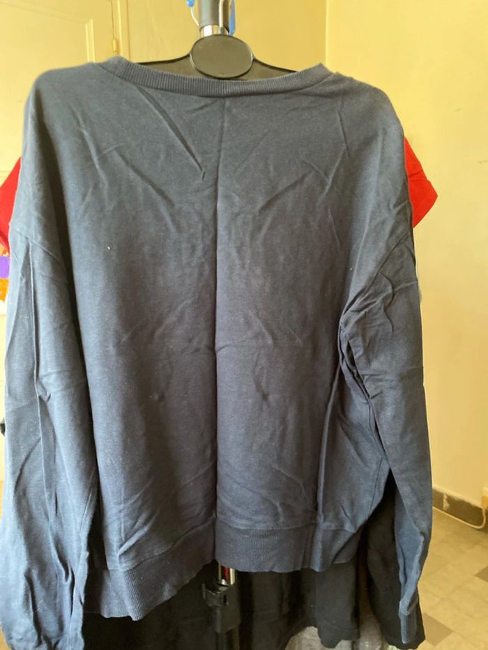 Pull bleu marine, taille M porté quelques fois juste un petit trou voir photo