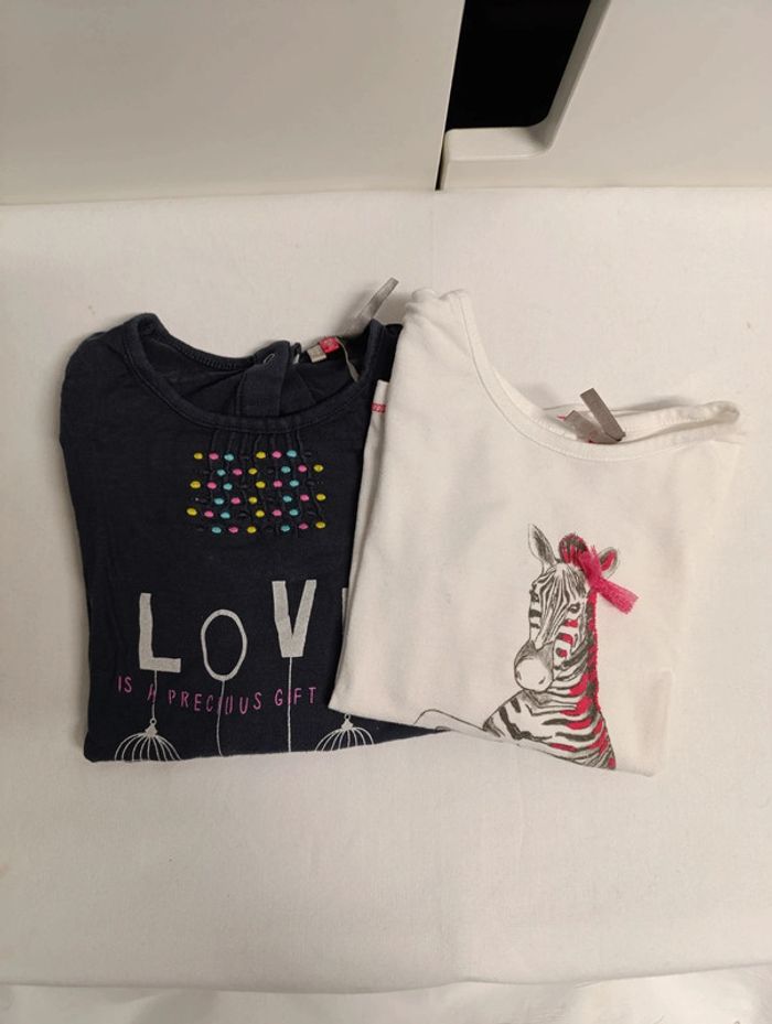 Lot de deux t-shirts fille, manches longues. Taille 2 ans Très bon état D'autres articles enfant à vendre dans mon dressing (fille jusqu'à 10 ans, garçon jusqu'à 3 ans). N'hésitez pas à aller les consulter et à faire un lot 😉