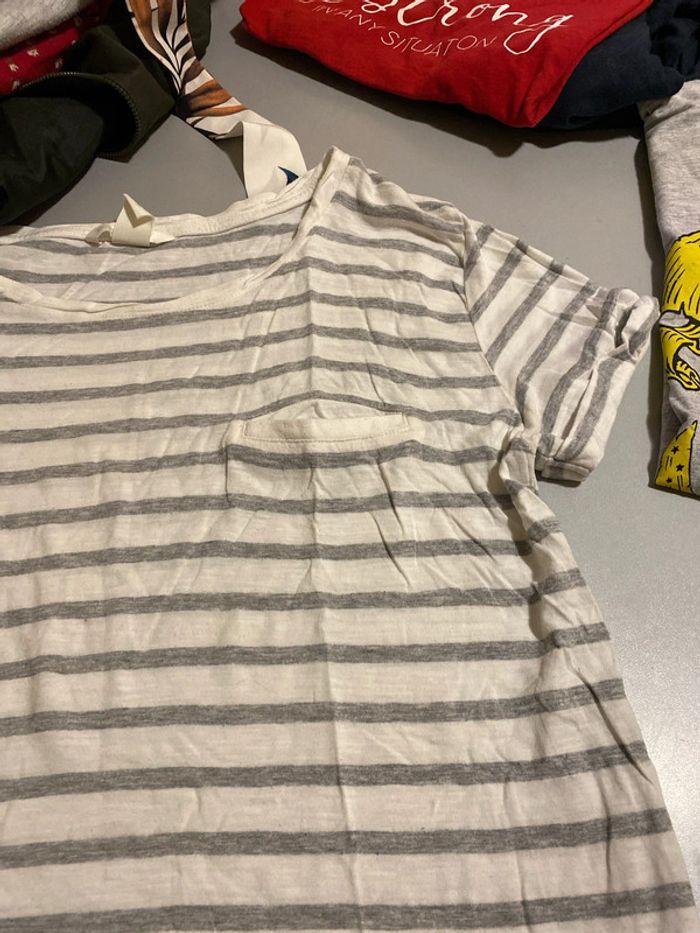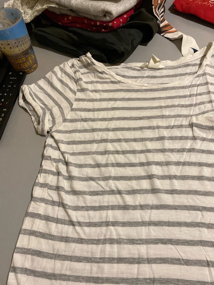 Teeshirt blanc gris rayures taille xs - photo numéro 1