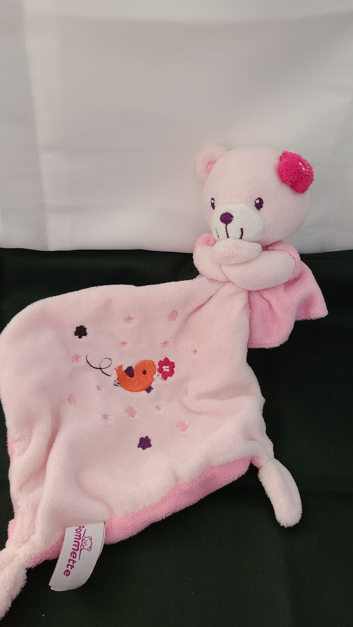 Pommette doudou ours rose mouchoir violet fleur oiseau - photo numéro 1