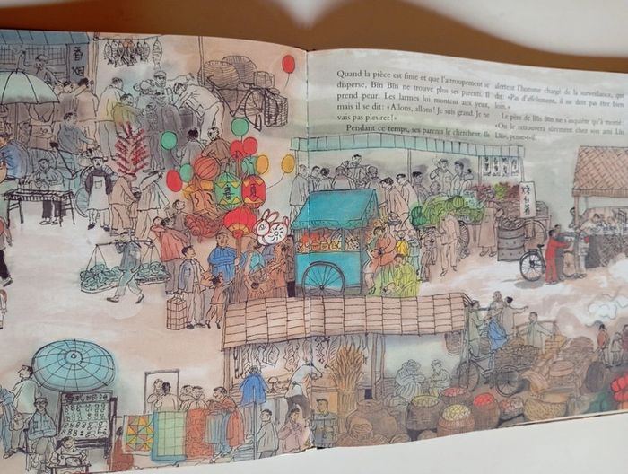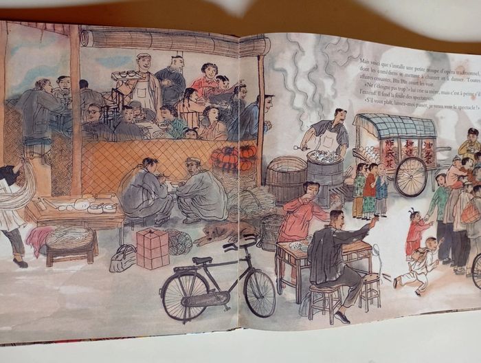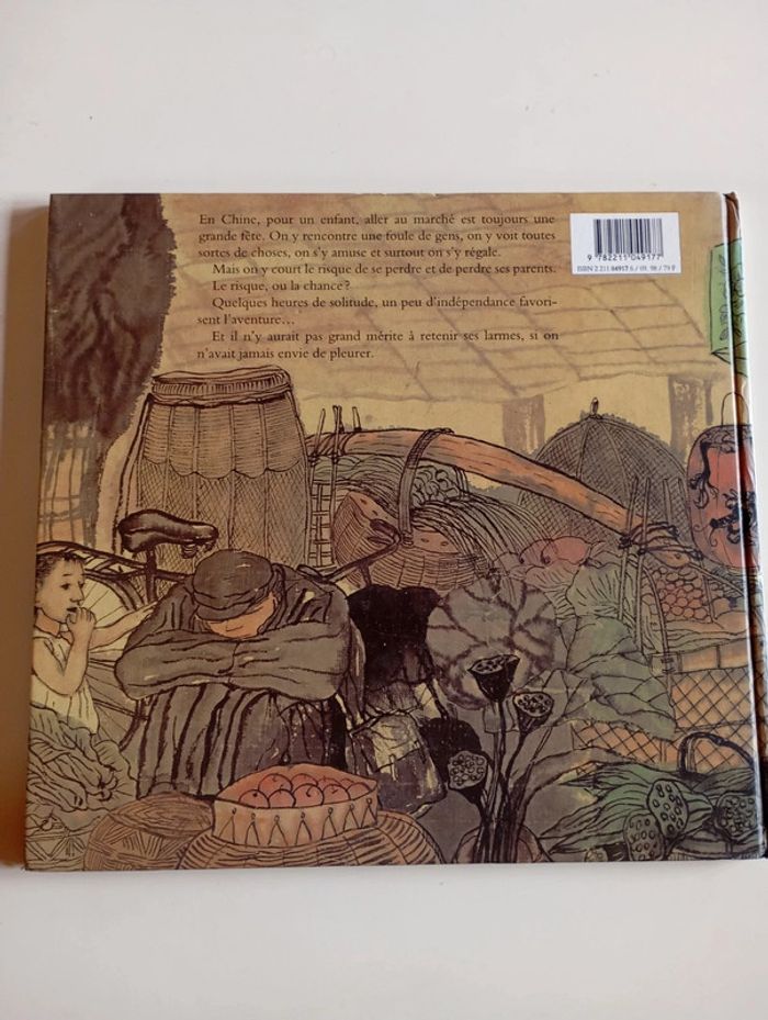 En Chine, pour un enfant, aller au marché est toujours une grande fête. On y rencontre une foule de gens, on y voit toutes sortes de choses, on s'y amuse et surtout on s'y régale. Bïn Bïn court de stand en stand : le vendeur de délicieuses nouilles, la troupe des chanteurs d'opéras, le monsieur qui fabrique des figurines en sucre soufflé et aussi... mais Bïn Bïn ne retrouve plus ses parents dans tout ce monde. Que faire tout seul au milieu du grand marché ? Éditeur ‏ : ‎ Ecole des Loisirs 40 pages Âge de lecture ‏ : ‎ 7 - 11 ans Dimensions ‏ : ‎ 27.2 x 0.9 x 28.8 cm Livre en bon état (Livre de médiathèque avec pochette sur dernière page et tampon masqué, cf dernière photo. Pages et couverture en très bon état) Je vends d'autres livres sur la Chine ou de l'Ecole des Loisirs #phil_peg_écoledesloisirs #phil_peg_écoledesloisirs #chine #émancipation #marché #enfant #culturechinoise #ChenJiangHong