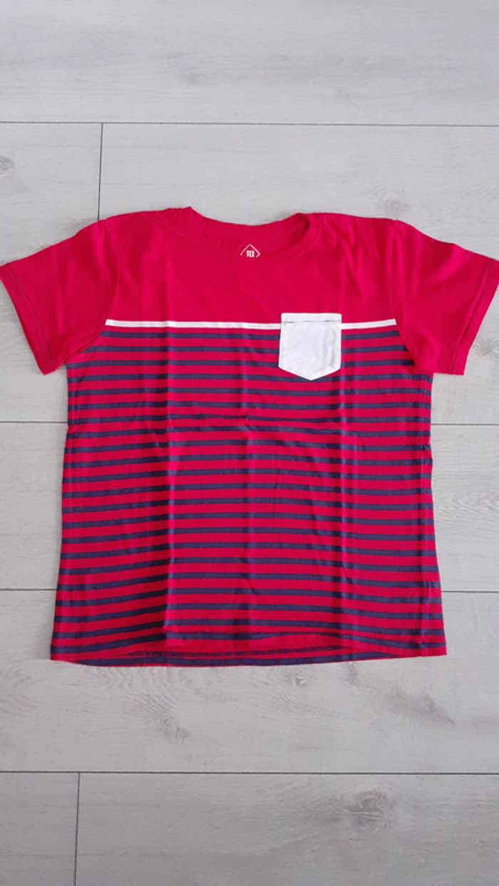 Tshirt à manches courtes pour garçon taille 11-12 ans marque Tex coloris rouge à rayures bleues marines #jenni1428_garcon_douzeans #jenni1428_garcon_onzeans