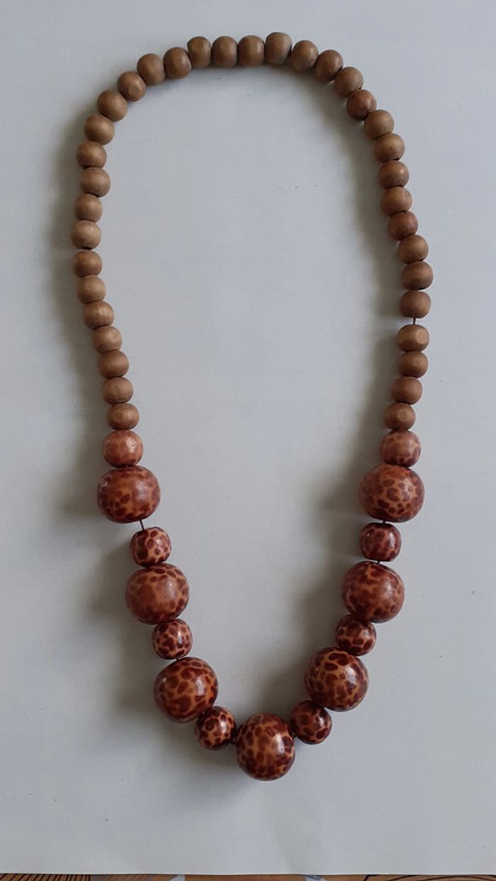 Collier en perle bois marron tigré #jenni1428_bijoux