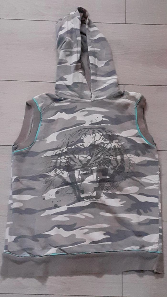 Sweat pour garçon taille 8/9 ans sans manches à capuche coloris kaki camouflage avec motif tête de Tigre sur le devant #jenni1428_garcon_huitans #jenni1428_garcon_neufans