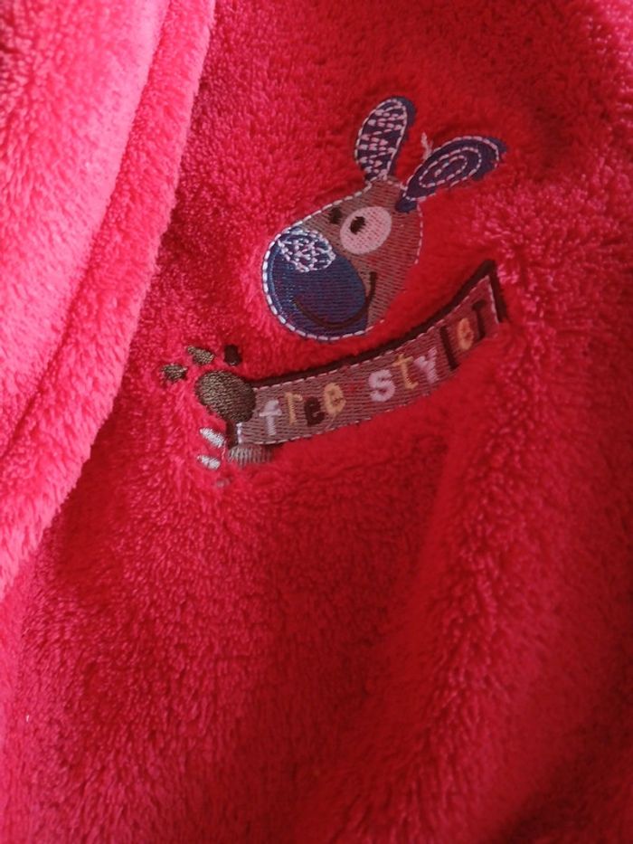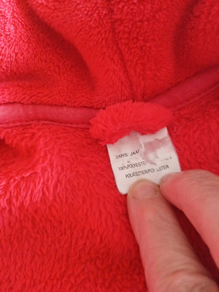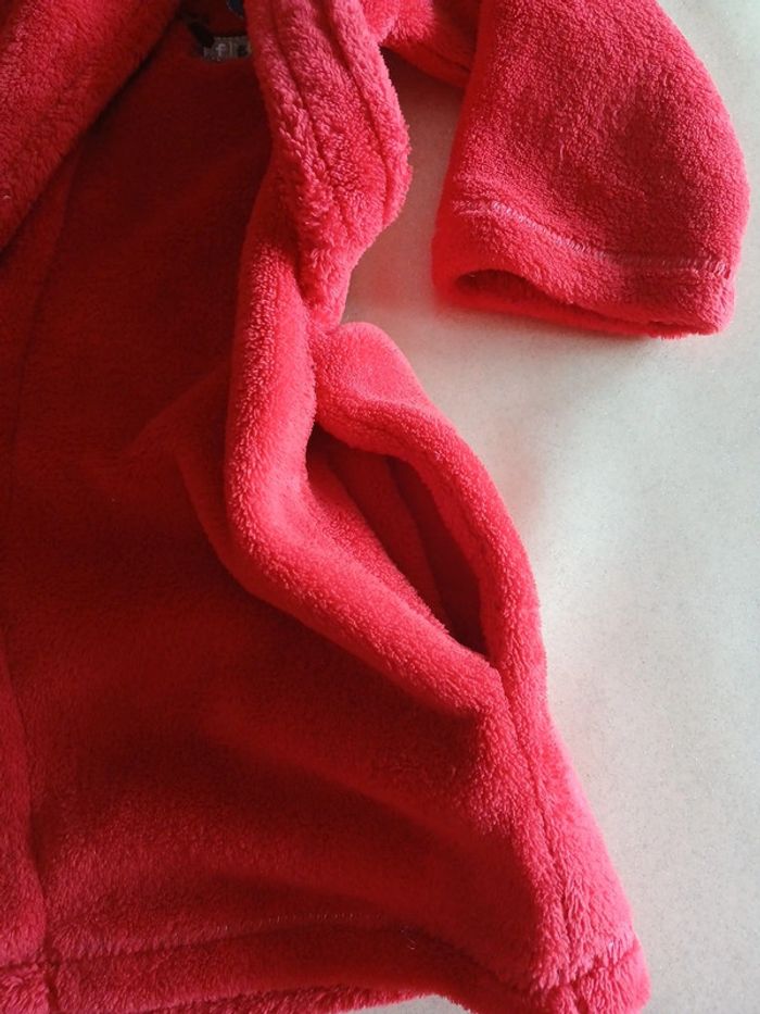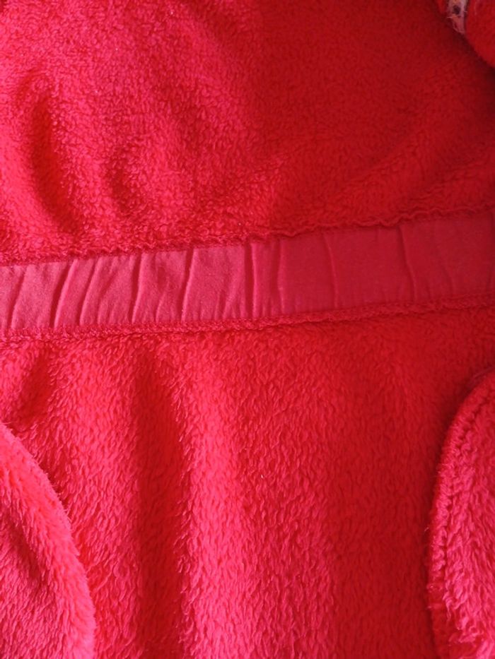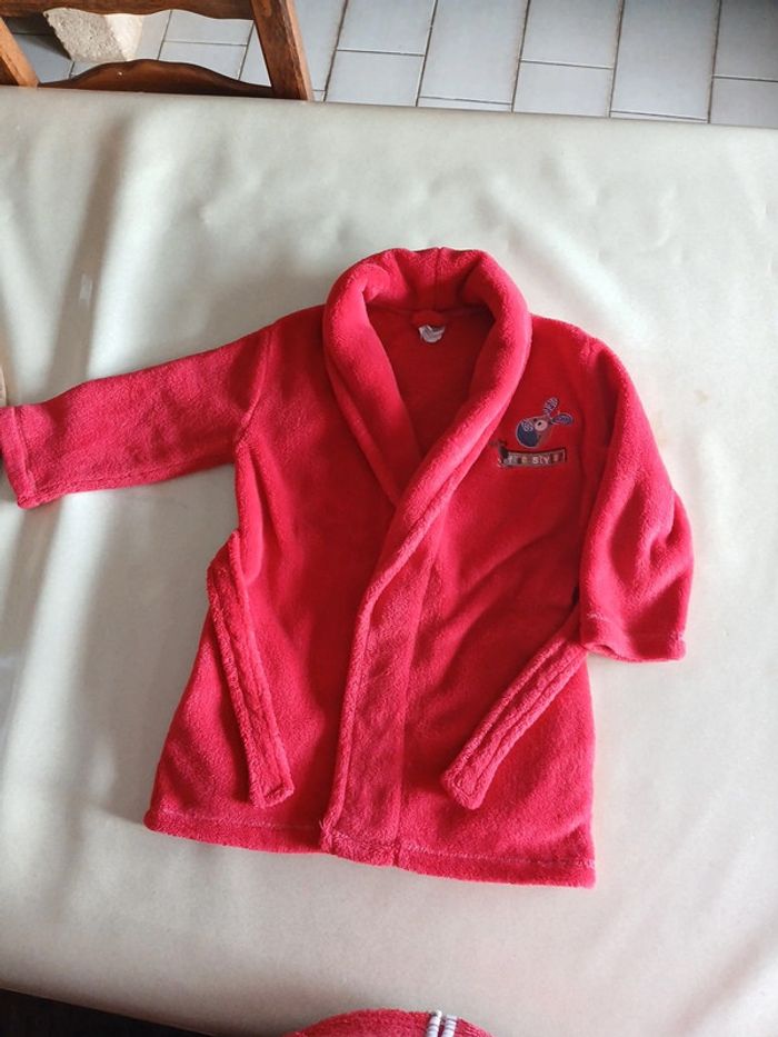 Robe de chambre rouge pour bébé. Très douce,en très bon état, taille 24 mois. Deux poches sur le côté et ceinture attenante.