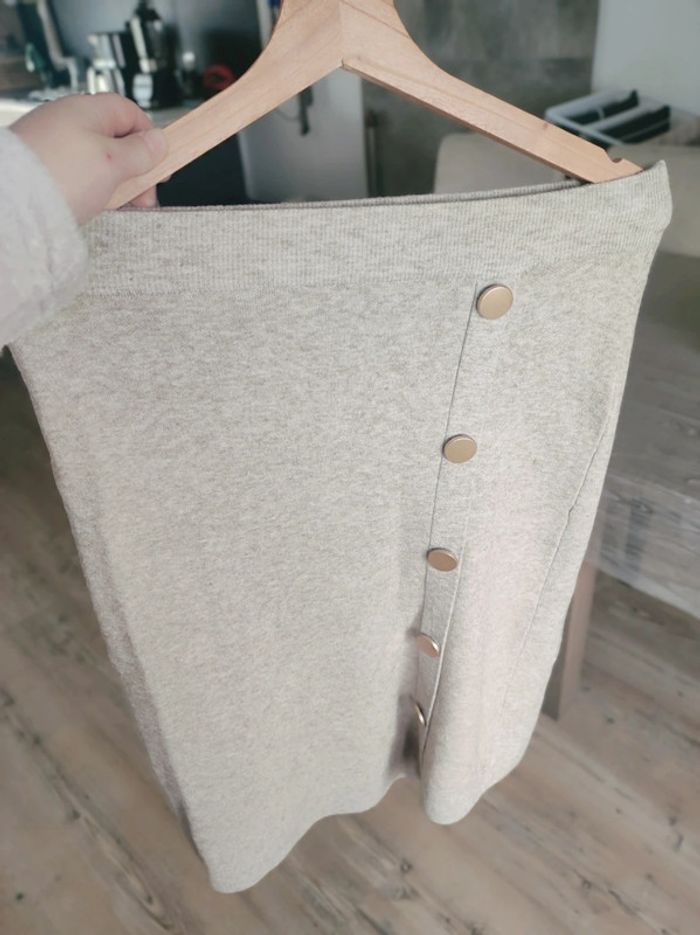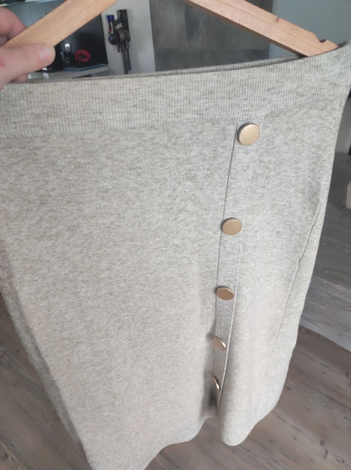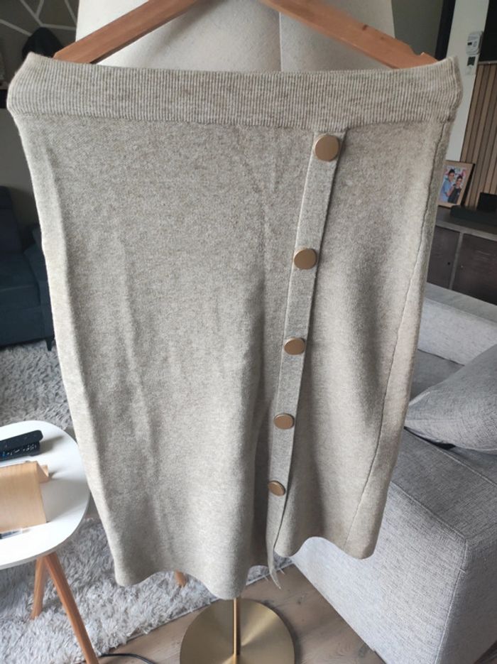 Jupe mi-longue beige/ marron chiné neuve jamais portée. Joli détail boutons dorés Taille unique mais qui conviendra à un 36 et un 38 #elomatfemme36 #elomatfemme38