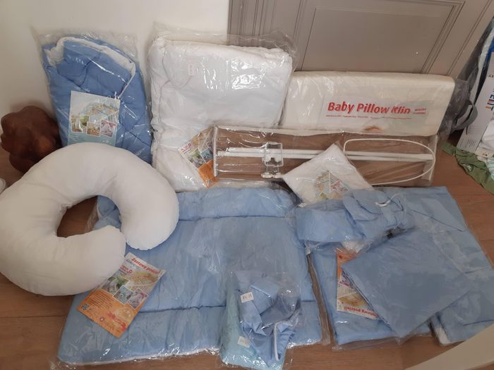Axesoires pour lit de bébé coussin couette draps moustiquer protége lit en total 13pc
