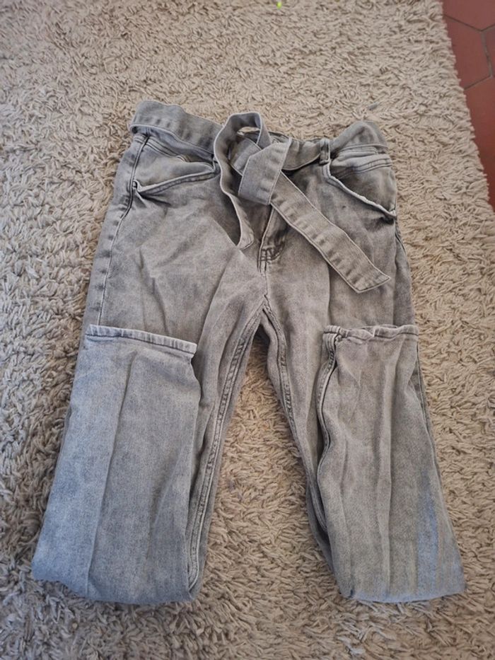 Magnifique jean gris femme taille 40 mon boyfit camaïeu Avec ceinture pour faire un noeud #angeliqueetilenzofemme