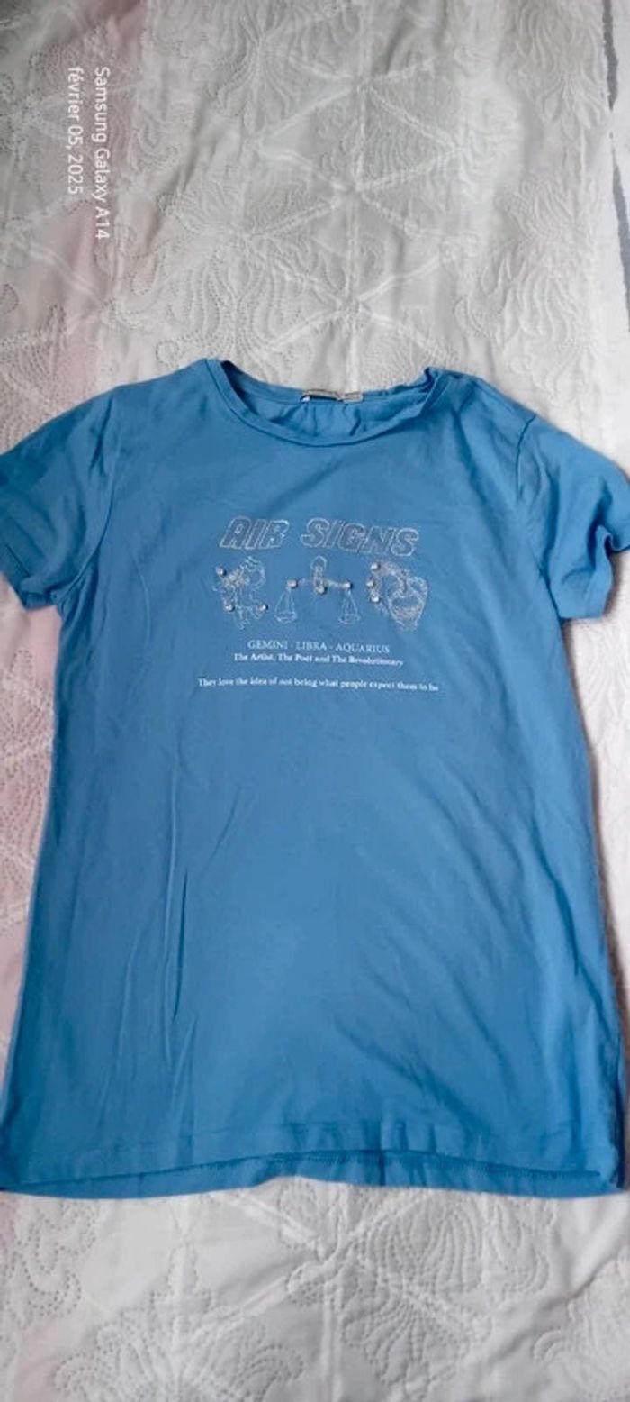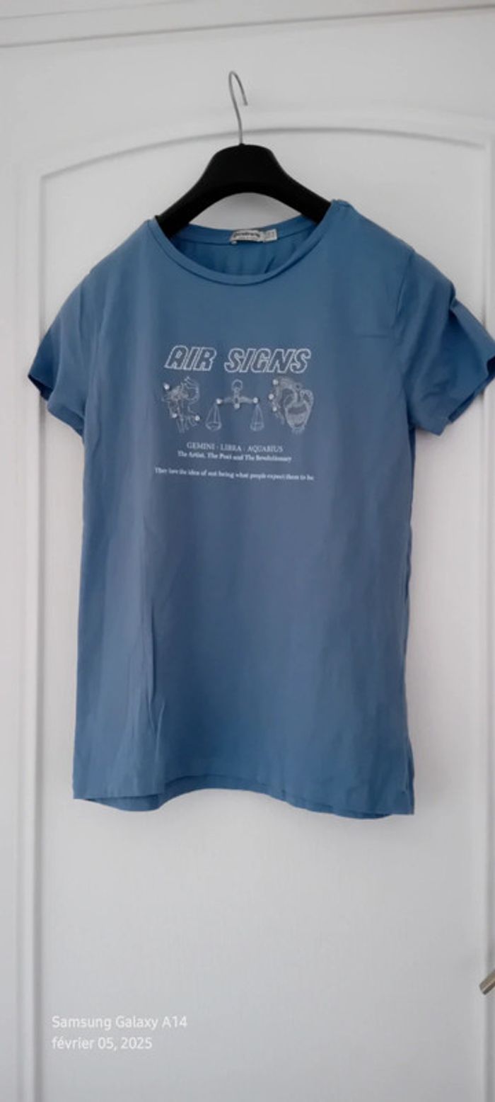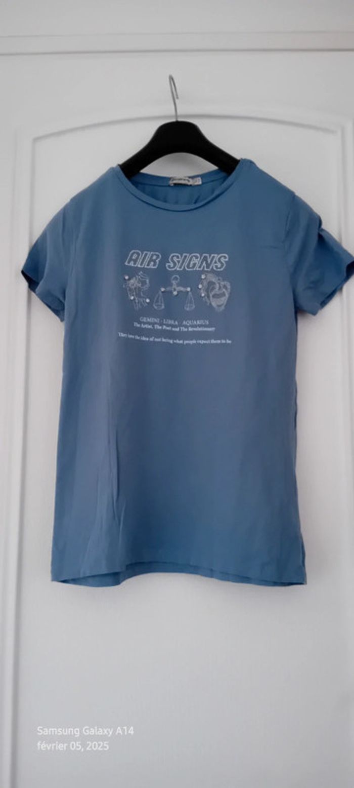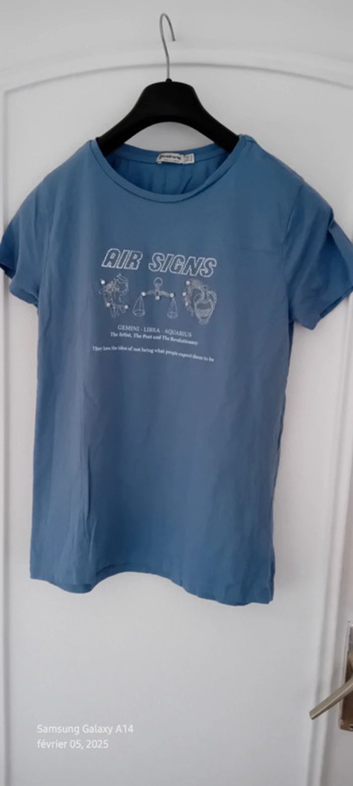 Tee-shirt motif signes astrologiques avec strass bleu femme S stradivarius - photo numéro 1