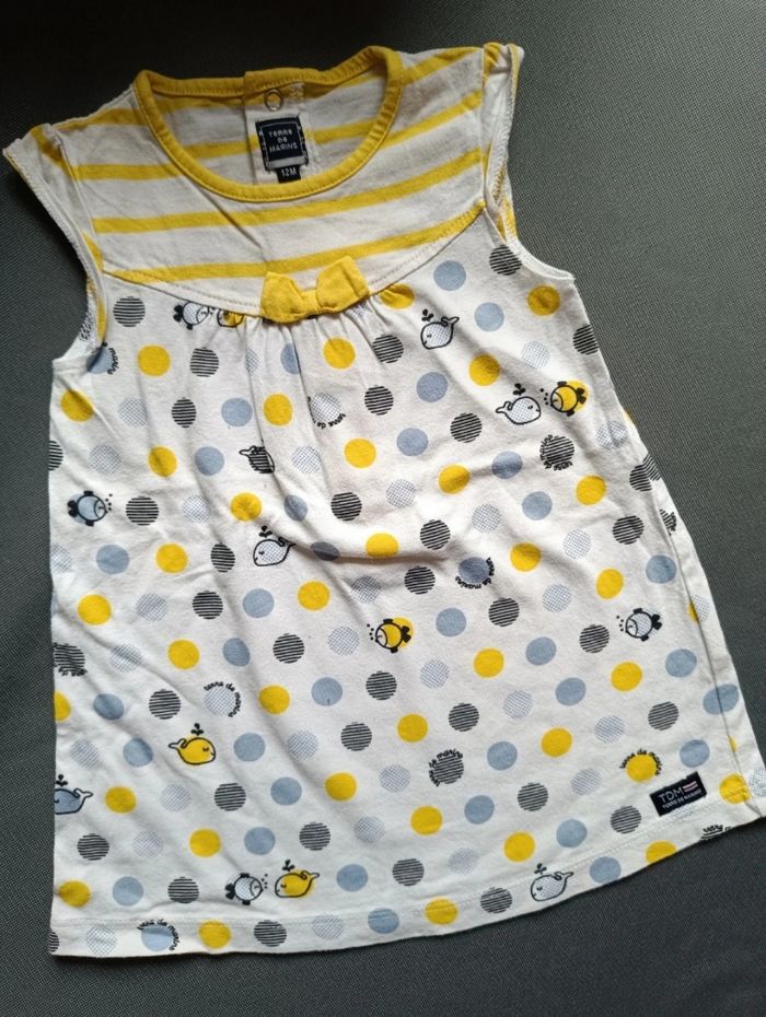 Robe à pois motif poisson. Très bon état. Taille 12 mois 💕Beaucoup de vêtements dans mon dressing avec réduction sur lot. Je fais le grand tri !