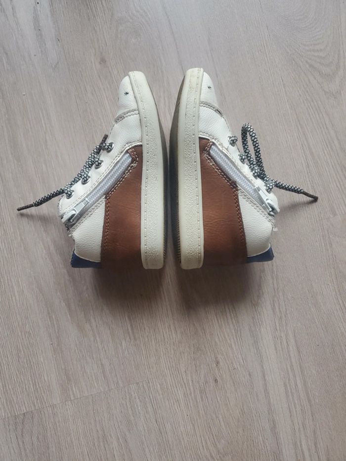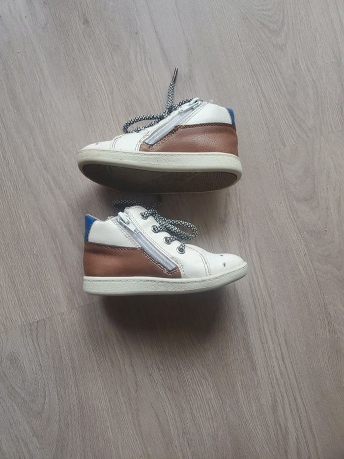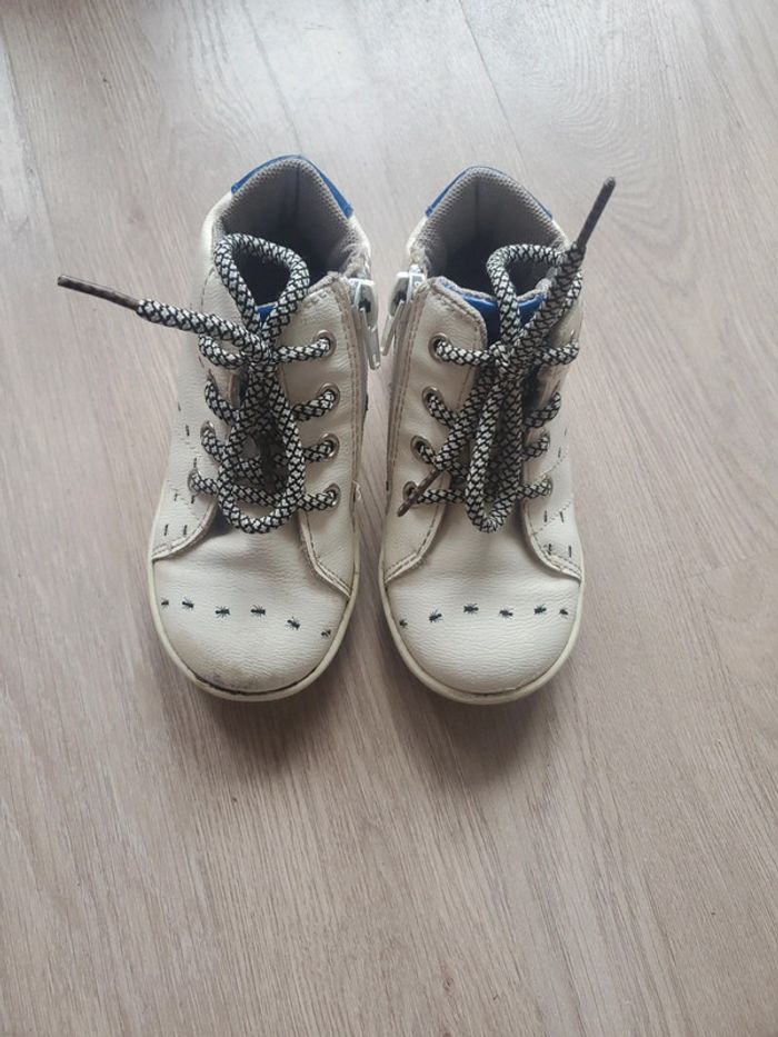 Fermeture éclair latérale et lacets, légère usure bout du pied droit