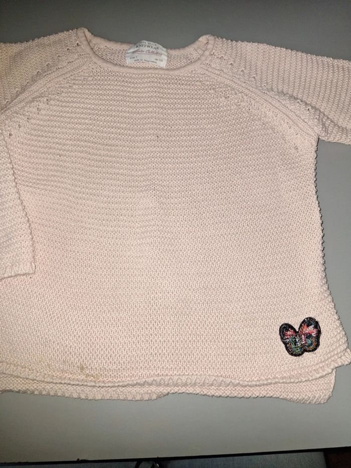 Pull à maille rose clair Motif papillon Légère tâche en bas et au milieu à un fil à un défaut de couleur Taille 5 ans Zara Pull qui peut être donné gratuitement si un lot de vêtements est pris en conséquence #2ans_fille_baby2014_2020