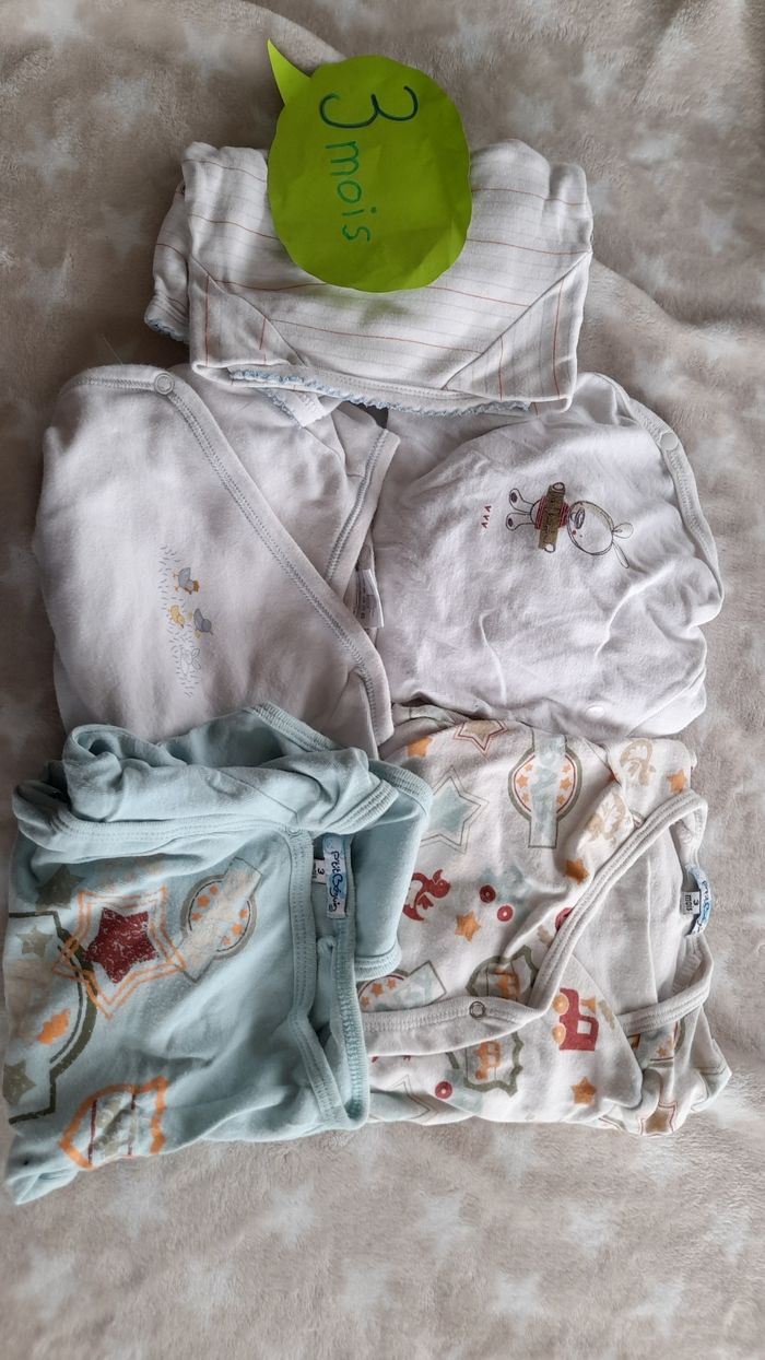 2 bodies petits béguin (les 2 premiers ( et 3 d une autre marque
