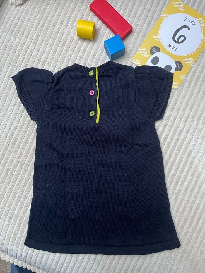 Jolie robe bleu marine avec 2 noeuds Manche courte 6 mois