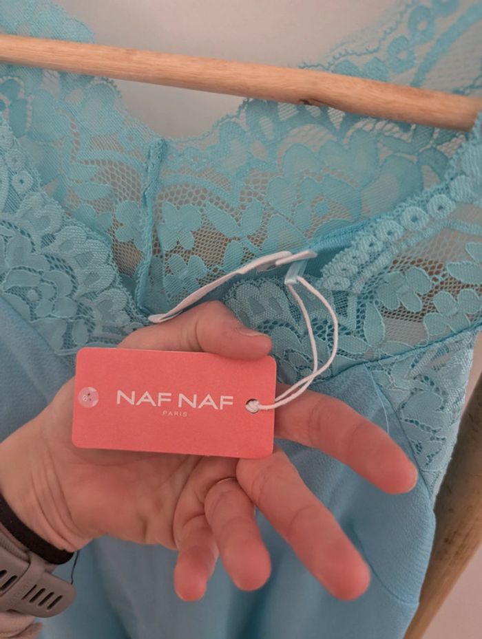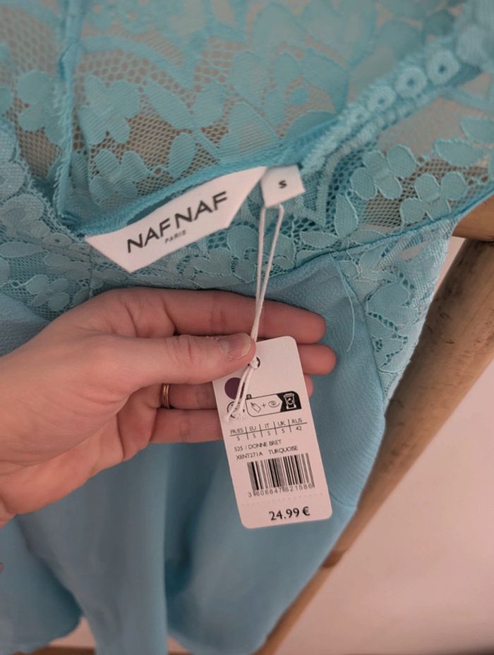 Débardeur bleu turquoise avec détails dentelle. Taille S. Marque Naf naf. Neuf avec étiquette. #tennytebvetementsfemme #nafnaf