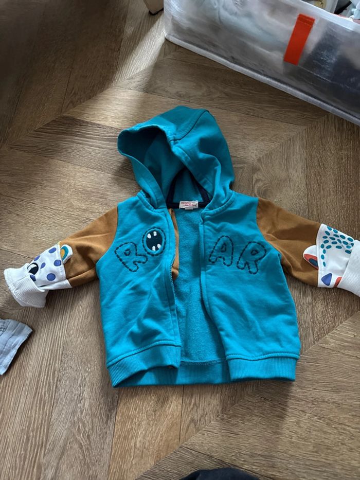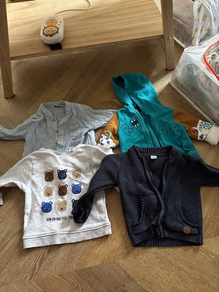 1 gilet bon état tex 1 sweat obaibi 1 gilet sweat zip DPAM 1 chemise légère TAO 12 mois