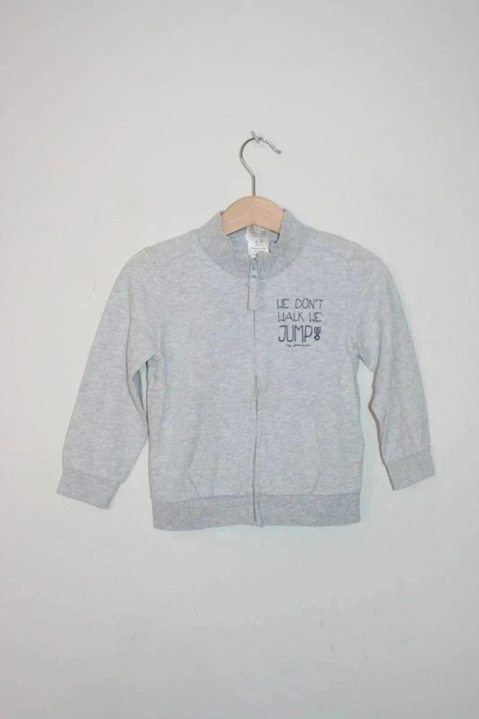 Sweat zippé gris Domyos taille 3 ans, petite tâche au niveau de la fermeture cf photo, 120g